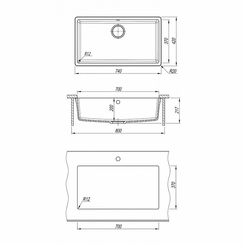 Мойка кухонная прямоугольная Флорентина Вега 700 Жасмин (22.435.E0700.201)