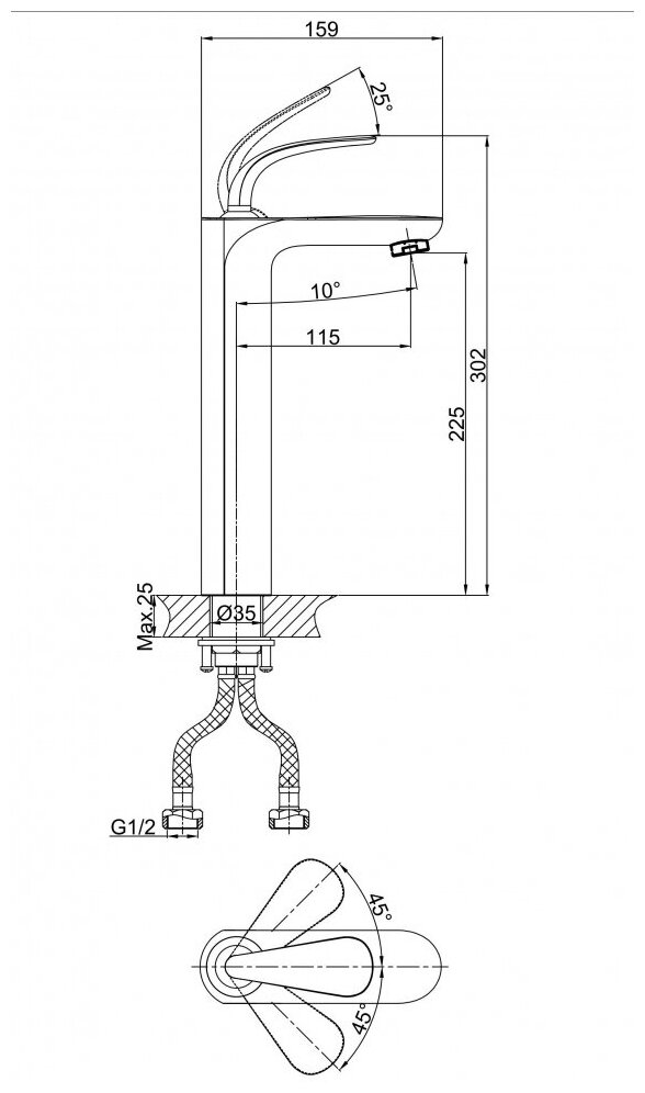 | Высота излива | 225 мм |