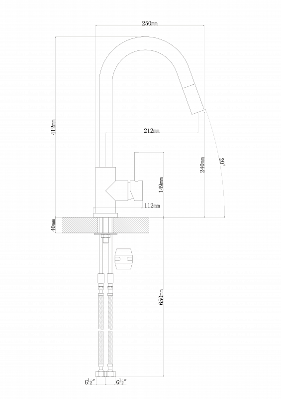 | Высота излива | 240 мм / 412 мм |