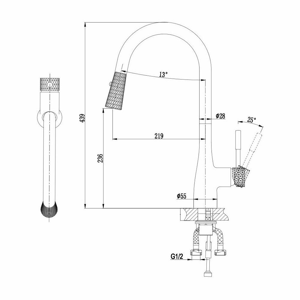 Смеситель для кухни D&K Rhein.Schiller DA1462505B с выдвижной лейкой хром черный