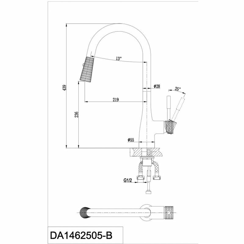 Смеситель для кухни D&K Rhein Schiller DA1462505B с выдвижной лейкой