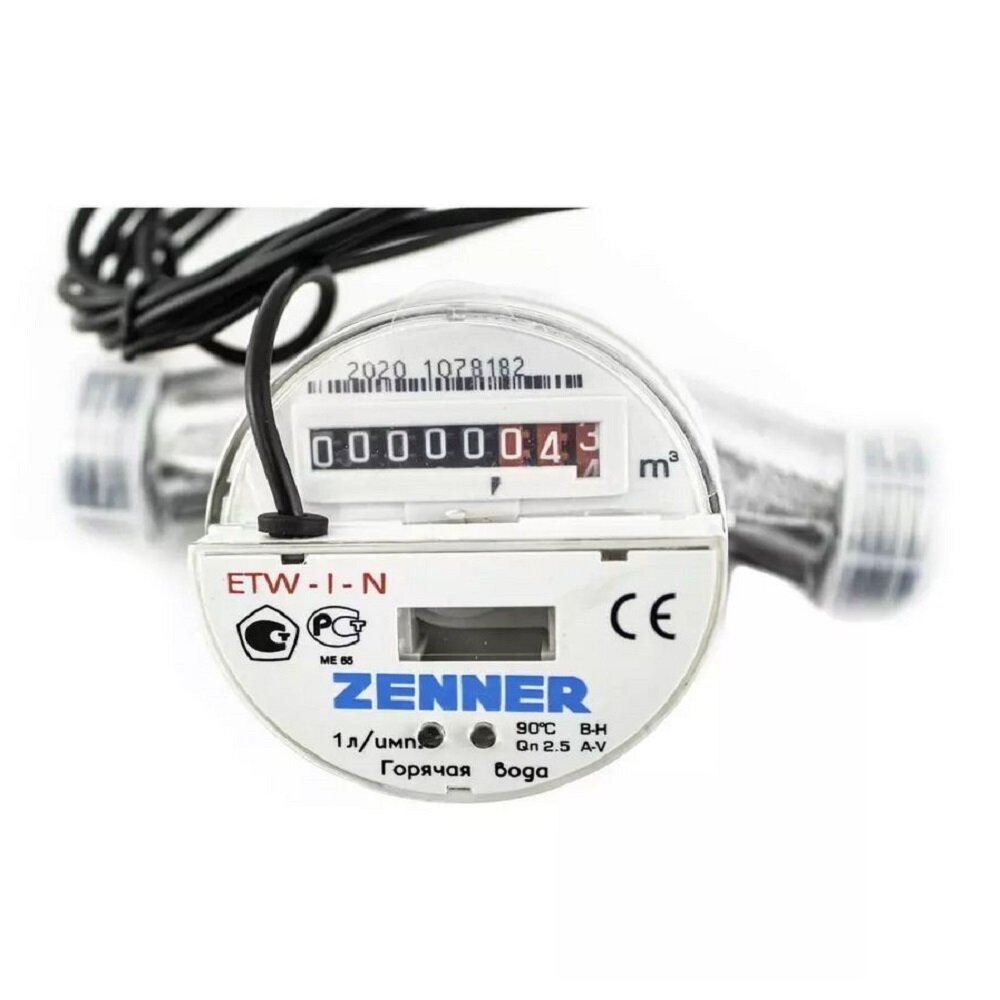Счетчик горячей воды Zenner ETW-I-N, DN 20, Qn 2,5, L 130 mm, G1"B, 8 рол., с импульсным выходом (1L/Imp.), без кмч, 8 рол. интересное: