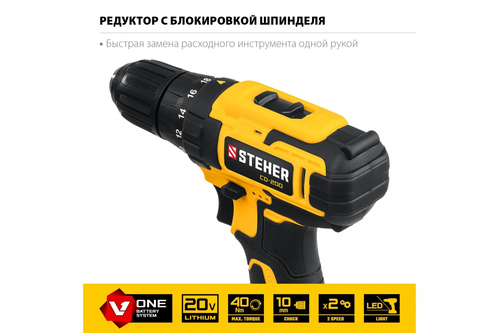 Дрель-шуруповерт STEHER CD-200 20В, без АКБ, арт. CD-200