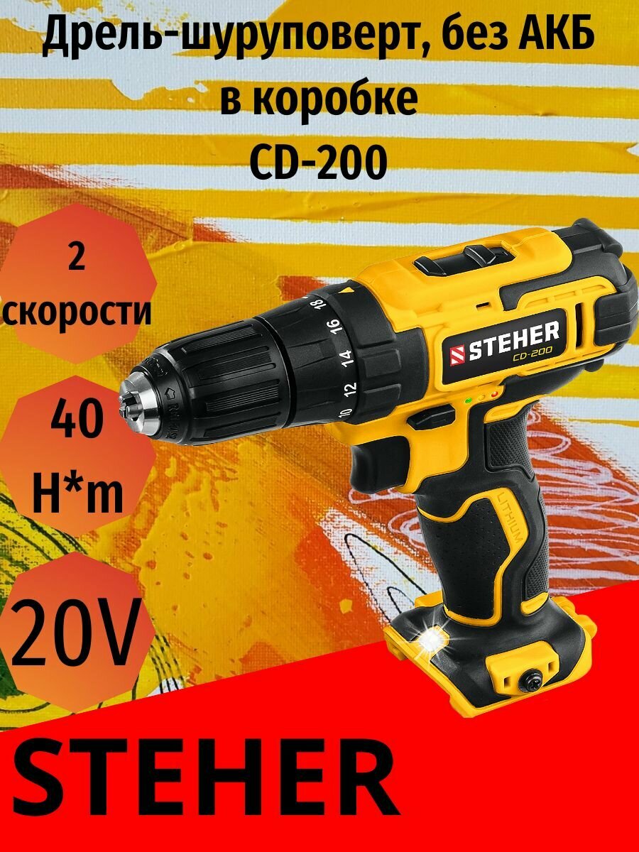 Дрель-шуруповерт STEHER CD-200 20В, без АКБ, арт. CD-200