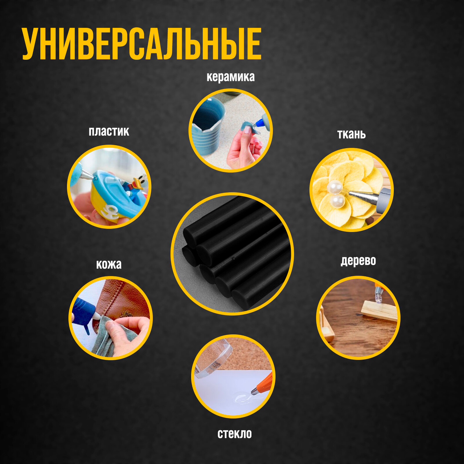 Клей для клеевого пистолета "Желтый" (набор 6 штук) 7ммх18 см 1056404