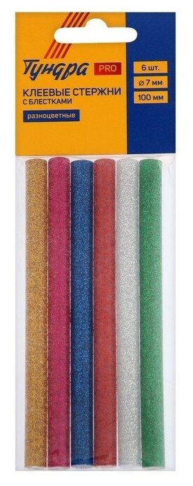 Тундра Клеевые стержни TUNDRA, 7x100 мм, разноцветные с блестками, 6 шт. интересное: