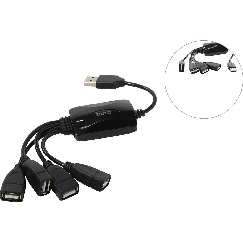 Разветвитель USB 2.0 Buro BU-HUB4-0.3-U2.0 Splitter черный