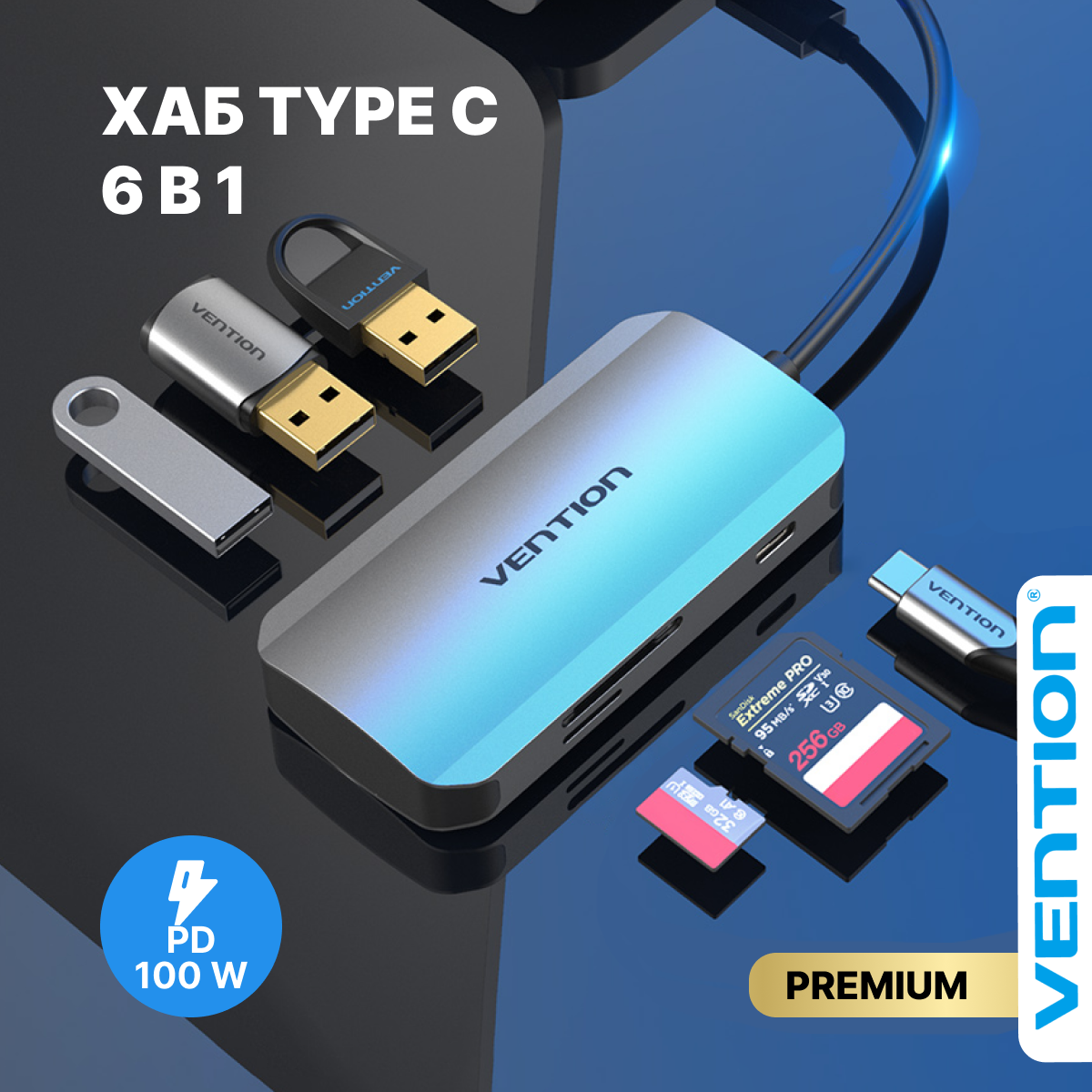 Хаб USB Vention USB-C - USB 3.0x3/SD/TF/PD TNHHB интересное: