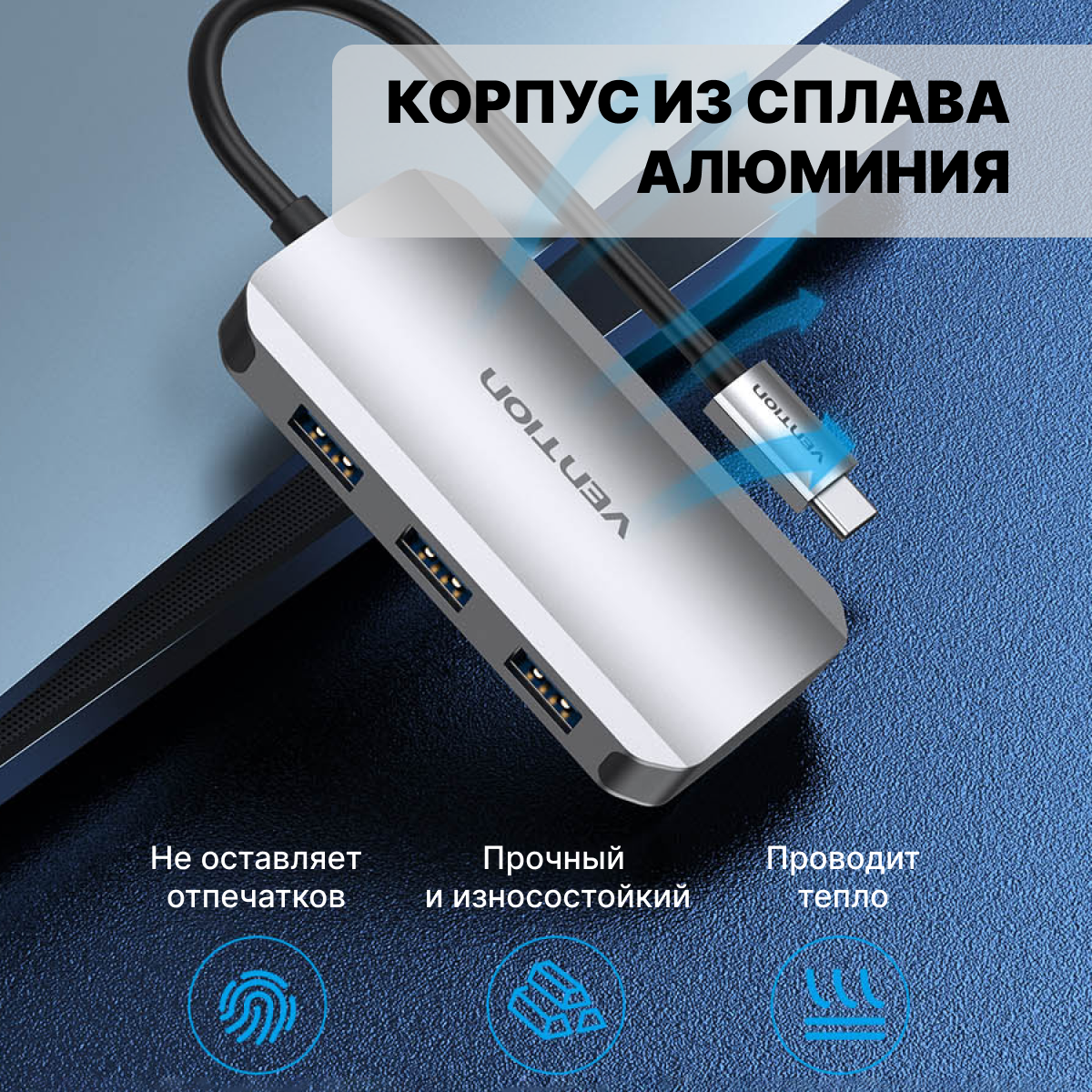 Разветвитель USB 3.1 Vention TNHHB USB-C > 3*USB 3.0/SD/TF/PD