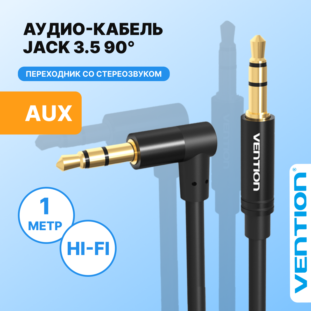Кабель VENTION аудио Jack 3.5 mm M/Jack 3.5 mm M угол 90 - 1 м., чёрный