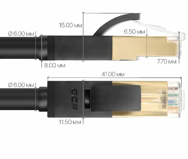 Патч-корд 7.5м F/FTP PROF cat.7 10 Гбит/с RJ45 LAN компьютерный кабель для интернета 24K GOLD экранированный черный (GCR-FTP701)