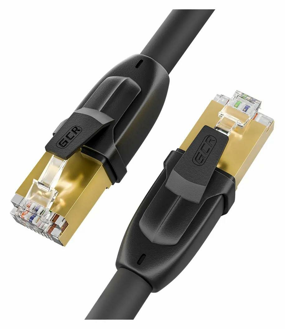Патч-корд 2м F/FTP PROF cat.7 10 Гбит/с RJ45 LAN компьютерный кабель для интернета 24K GOLD экранированный черный (GCR-FTP701)