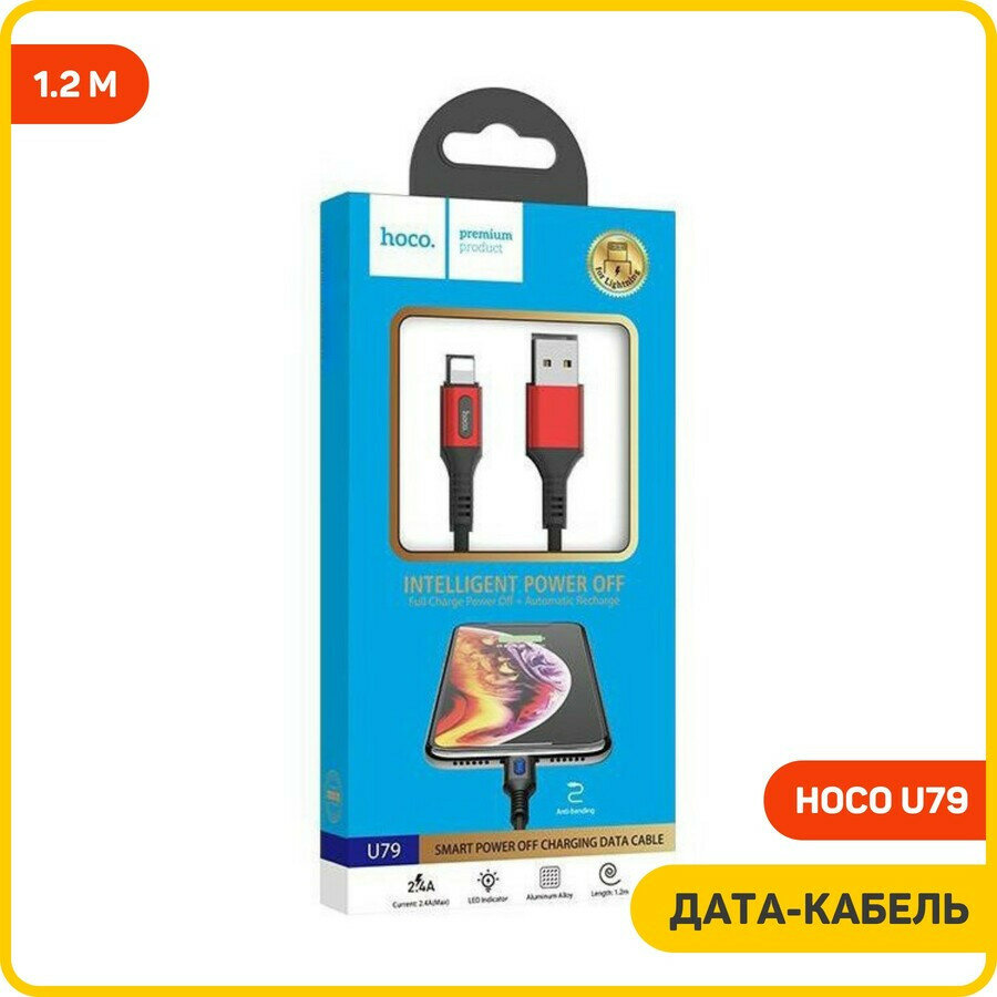 Купить Дата-кабель Hoco U79 USB-Lightning, 1.2 м, красный