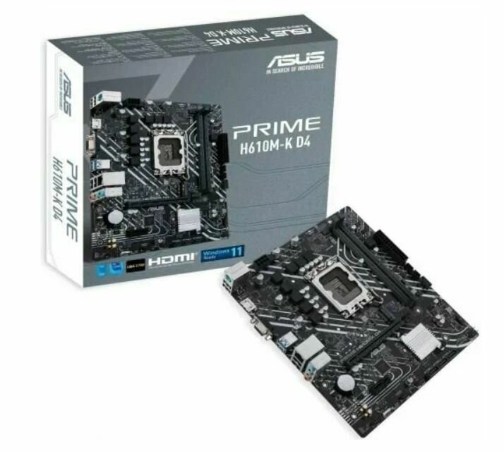 Материнская плата ASUS PRIME H610M-K D4 Socket 1700, Intel H610, 2xDDR4, PCI-E 4.0, 2xUSB 3.2 Gen1, VGA, HDMI, mATX