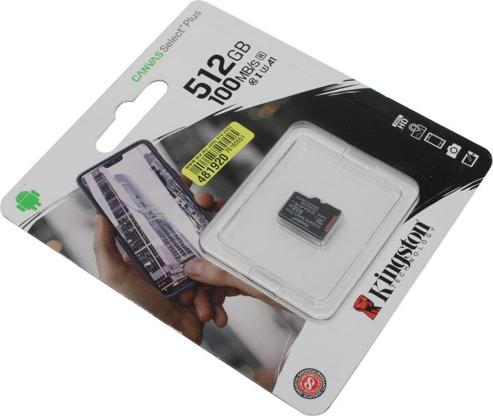 СохранитьКарта памяти Kingston micro SDXC 512Gb Canvas Select Plus UHS-I U3 V30 A1 (100/85 Mb/s) интересное: