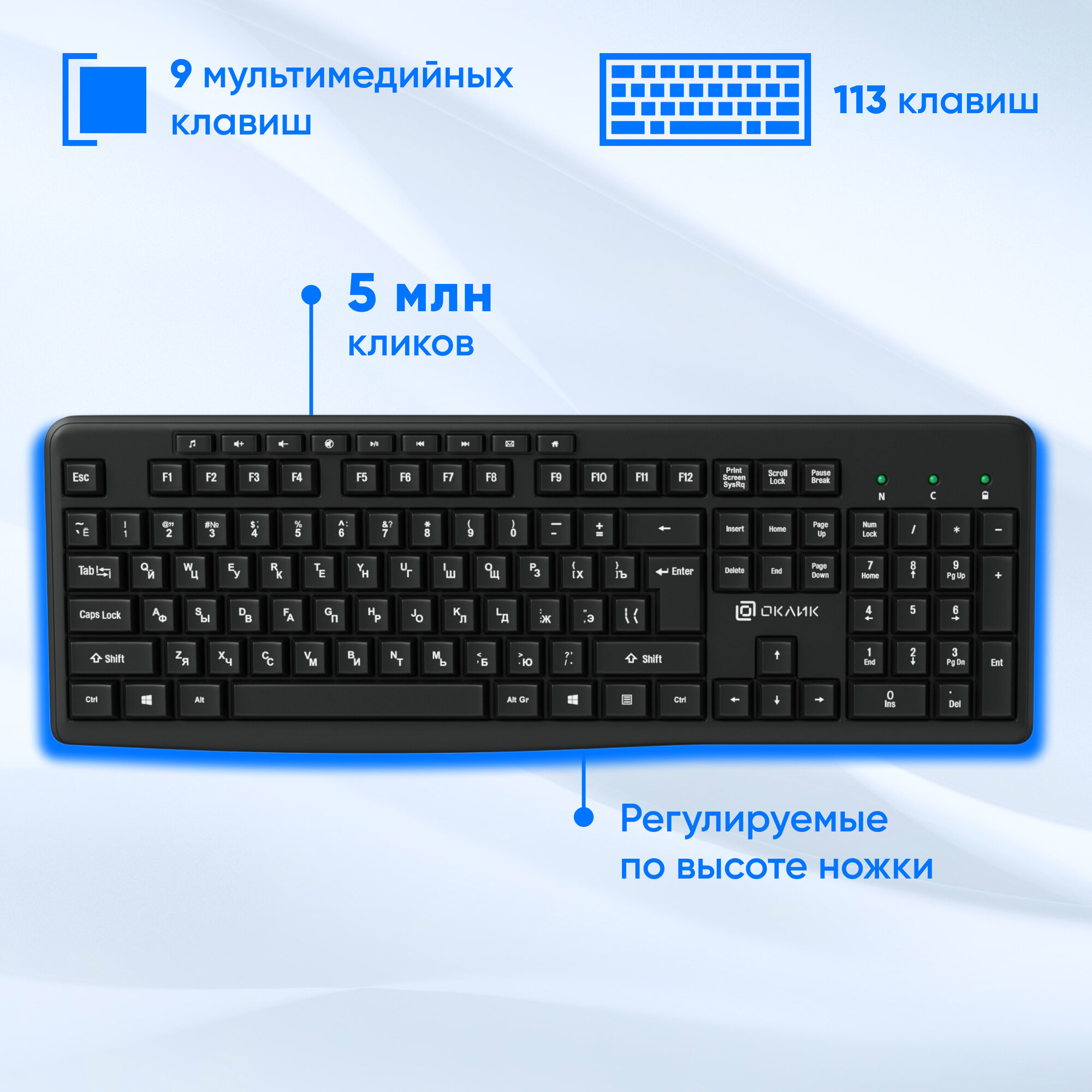 Комплект клавиатура+мышь Оклик 225M черный/черный (1454537)