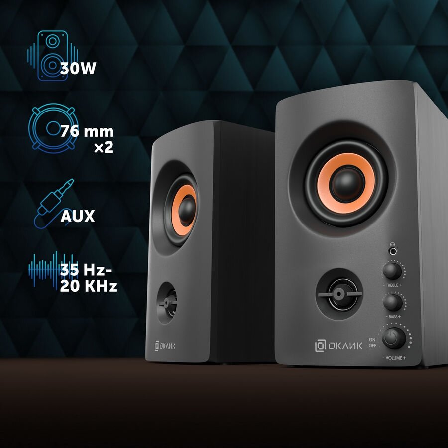 Колонки Oklick OK-164 2.0 черный 30Вт OK-164 черный
