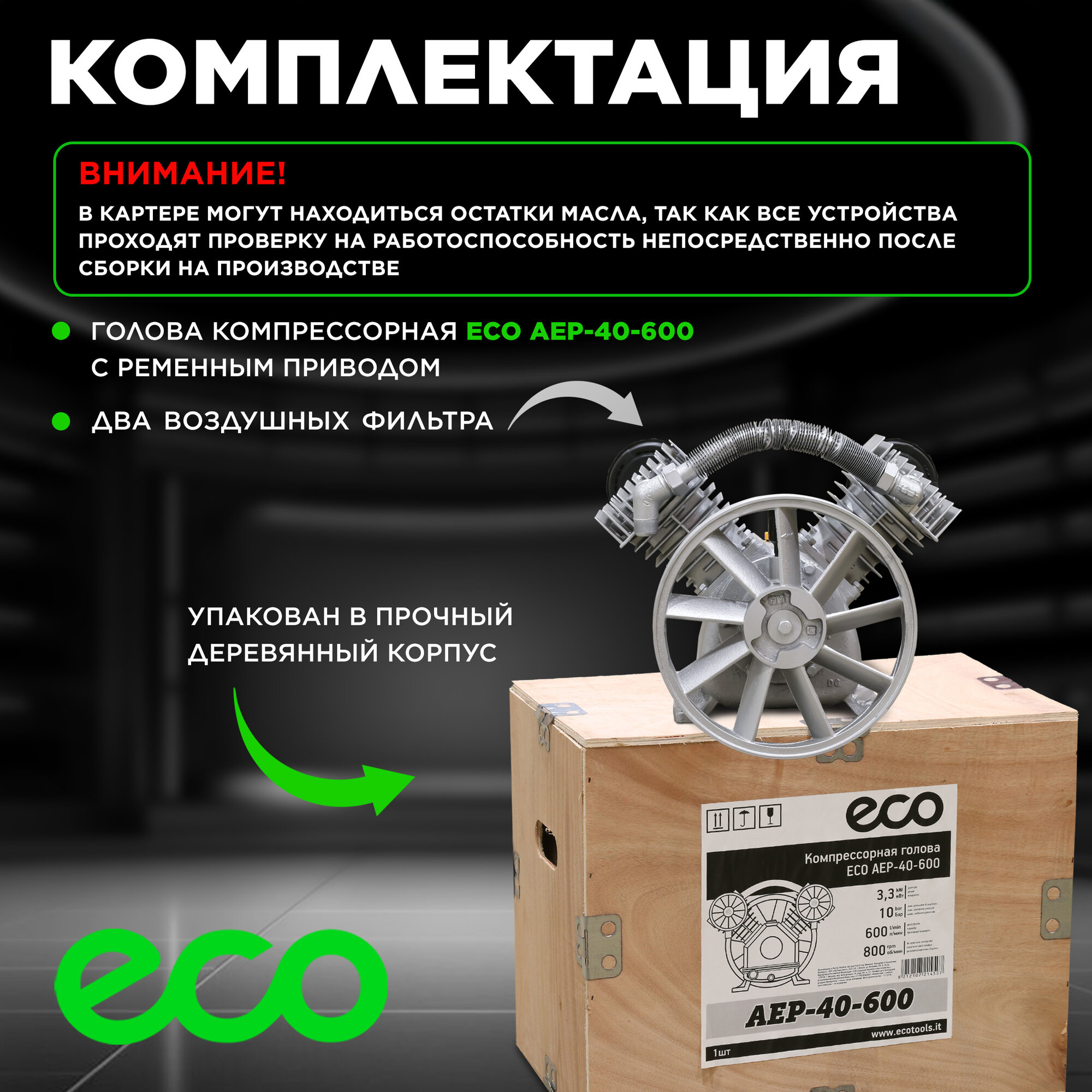 Компрессорная голова ECO AEP-40-600 (600 л/мин; 3,3 - 4 кВт; 10 бар) интересное: