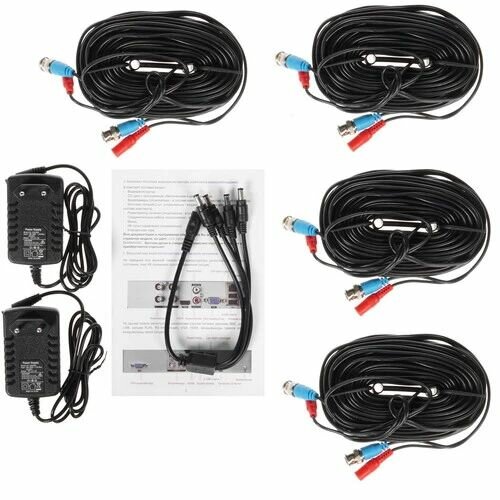 | Подробная комплектация | 4-х канальный видеорегистратор в прочном, металлическом корпусе, 2 купольные внутренние цветные камеры в пластиковом корпусе и 2 уличные цилиндрические цветные камеры видеонаблюдения с ИК-подсветкой до 25 метров, комплект из 4-х комбинированных проводов длиной 18 метров для подключения видеокамер к видеорегистратору, разветвитель питания камер, 2 блока питания для подключения камер и видеорегистратора, инструкция по подключению на русском языке и диск с программным обеспечением. Жёсткий диск (HDD) в комплект не входит и приобретается отдельно |