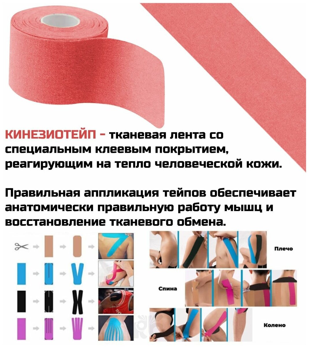 Тейп кинезиологический / бинт самофиксирующийся, кинезиотейп Silapro, 5 см х 5м, красный интересное:
