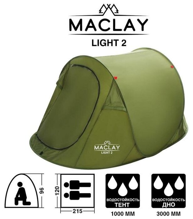 Палатка туристическая LIGHT 2, размер 215 х 120 х 95 см, однослойная интересное: