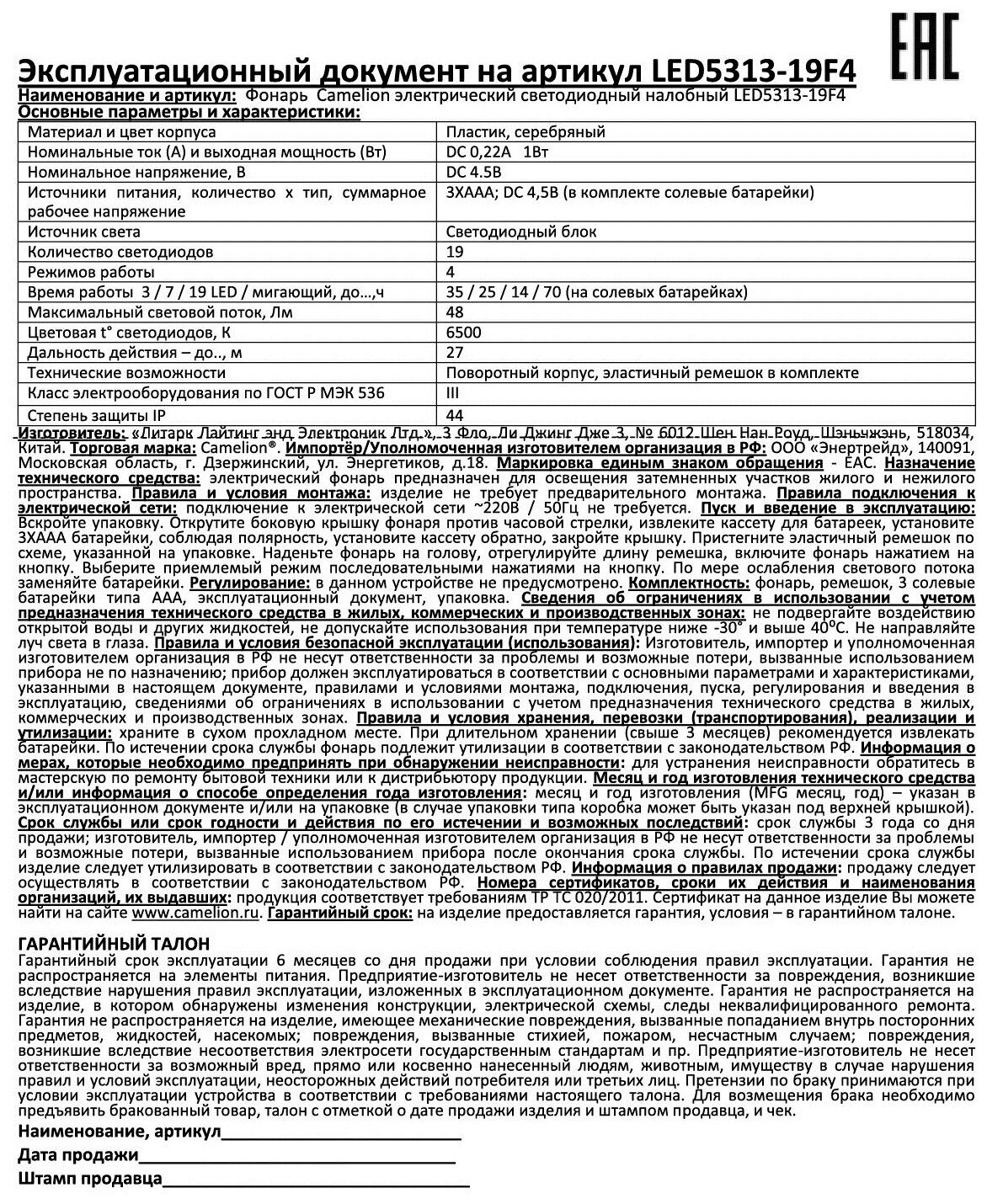 СохранитьФонарь Camelion 7537 интересное: