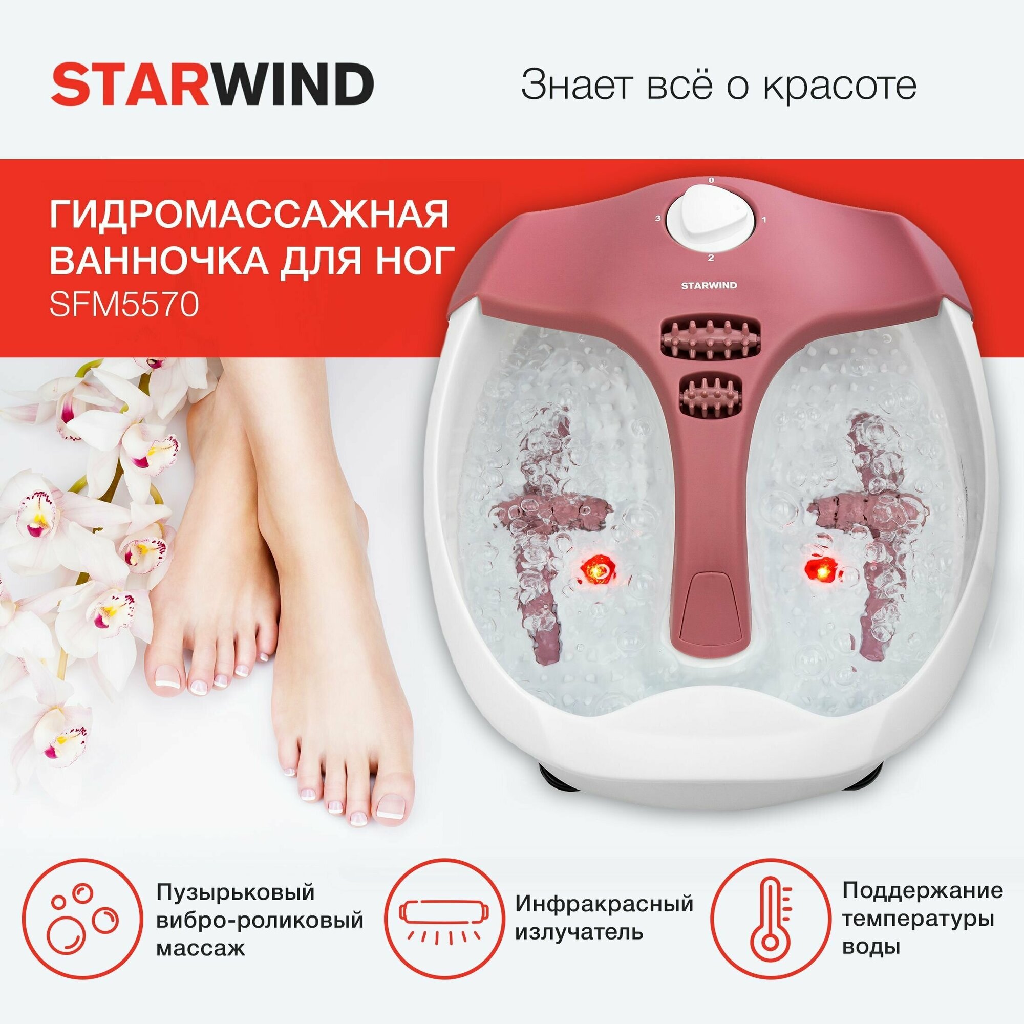 Гидромассаж для ног Starwind SFM5570 белый/розовый