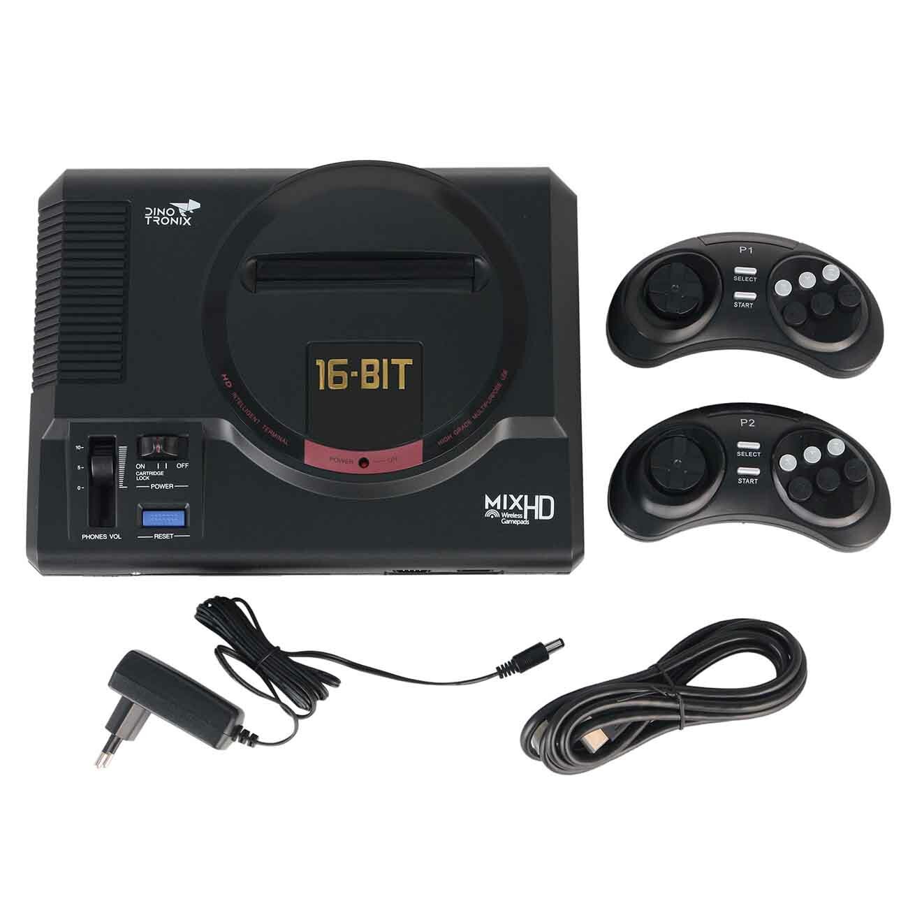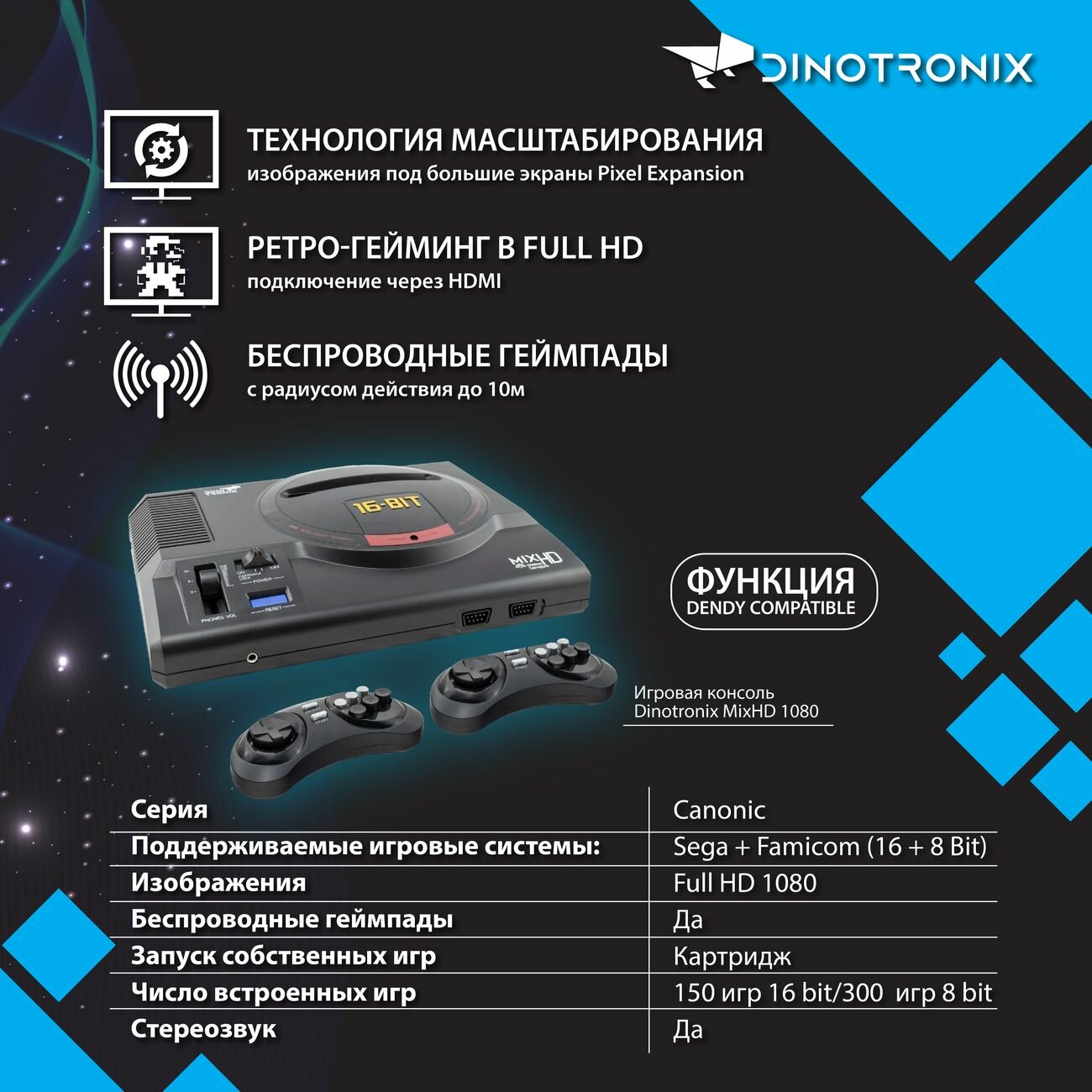 Игровая приставка 8 bit + 16 bit Dinotronix MixHD 1080 (450 в 1) + 450 встроенных игр + 2 беспроводных геймпада (Черная)