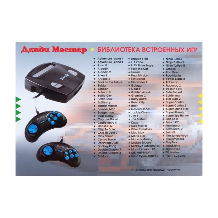 Ниже Вы можете прочитать отзывы на Dendy Игровая приставка Dendy Master, 8-bit, 300 игр, 2 геймпада, ознакомится с подробными характеристиками, посмотреть интересные обзоры и фотографии на Dendy Игровая приставка Dendy Master, 8-bit, 300 игр, 2 геймпада.