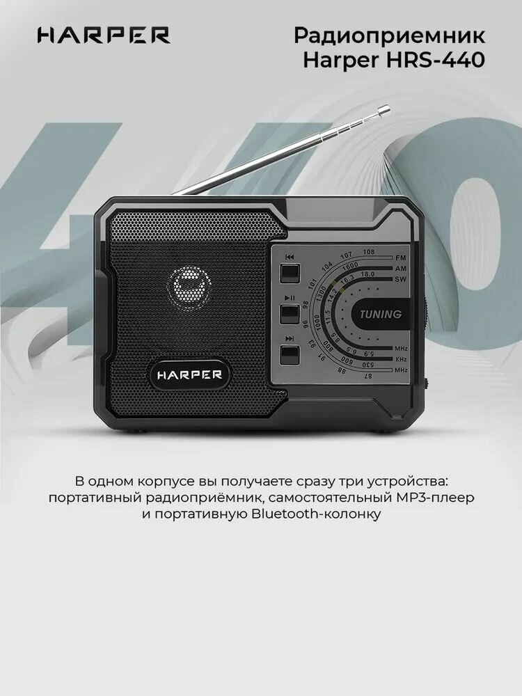Приемники HARPER Радиоприемник HARPER HRS-440, черный