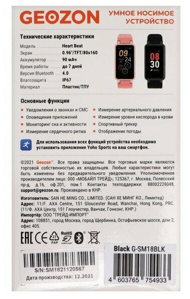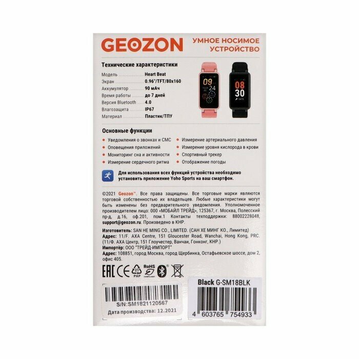 Фитнес-браслет BAND HEART BEAT BLACK G-SM18BLK GEOZON
