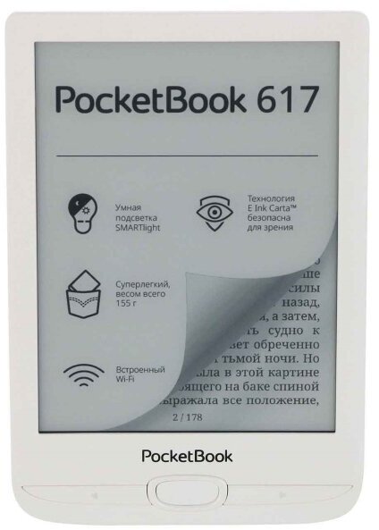 Ниже Вы можете прочитать отзывы на Электронная книга PocketBook PB617 White, ознакомится с подробными характеристиками, посмотреть интересные обзоры и фотографии на Электронная книга PocketBook PB617 White.