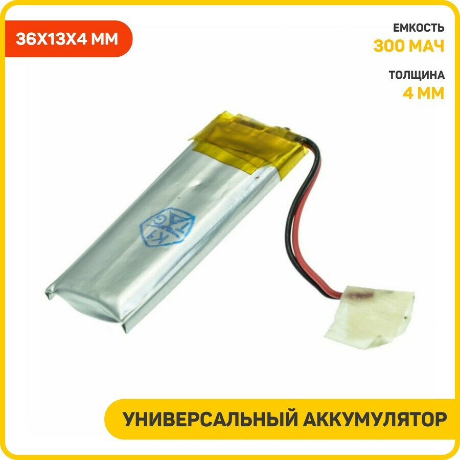 Купить Универсальный аккумулятор (банка) 3.7 В, 300 мАч, 36x13x4 мм