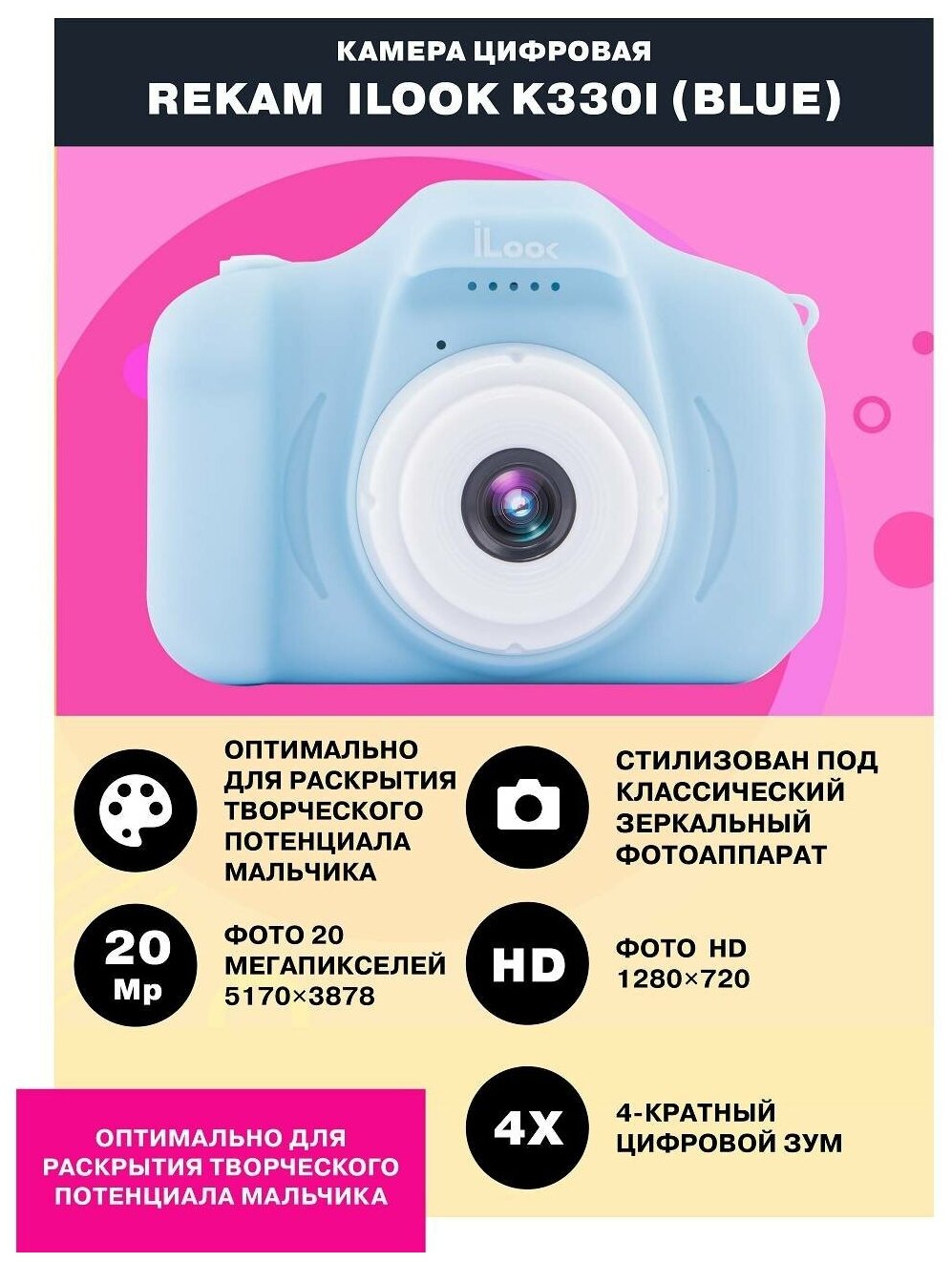 СохранитьЦифровой фотоаппарат Rekam iLook K330i, детский, голубой интересное: