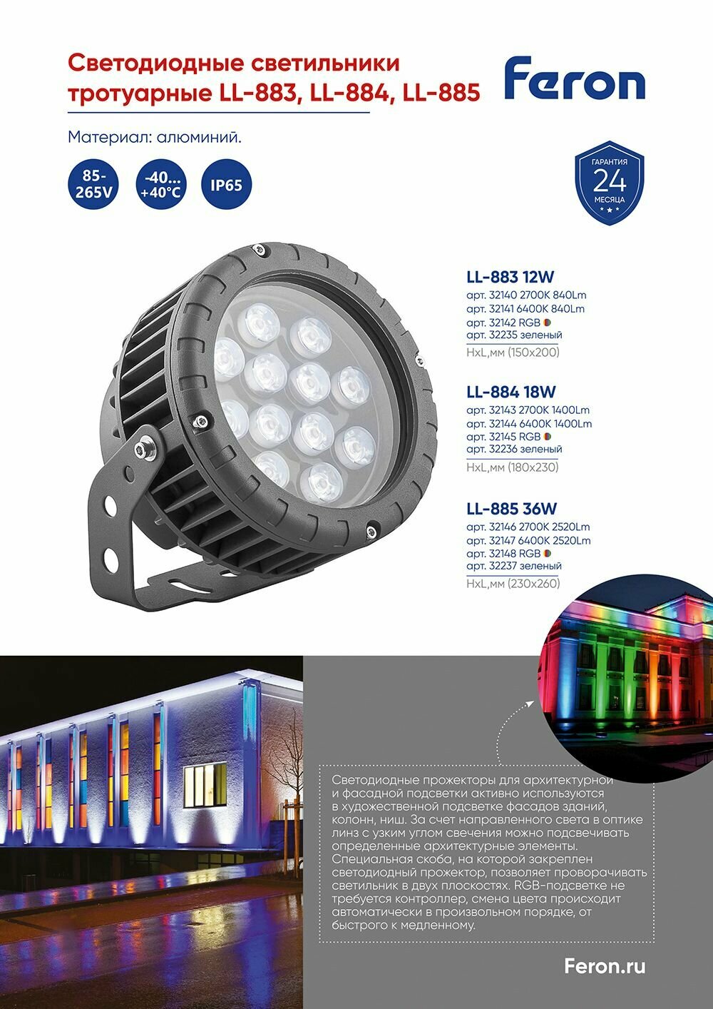 Светодиодный светильник ландшафтно-архитектурный LL-883 85-265V 12W 6400K IP65, FERON 32141 (1 шт.)