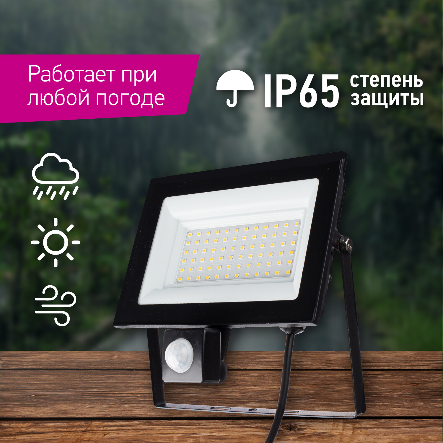 Прожектор светодиодный онлайт 61 985, 50 Вт, дневной свет 4000К, с датчиком движения