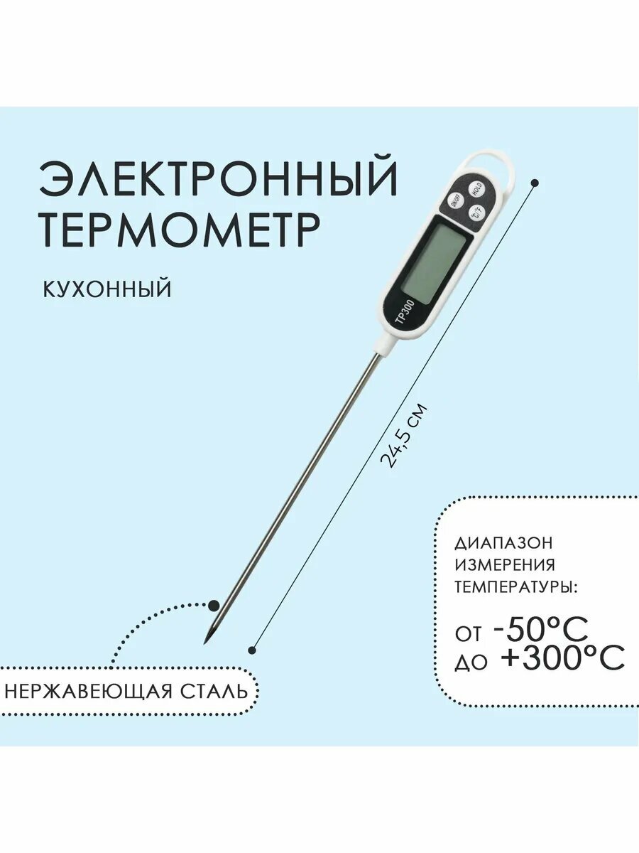 Кулинарный термометр электронный со щупом из нержавеющей стали, термометр для еды, мяса, вина, провод 1 метр / таймер кухонный