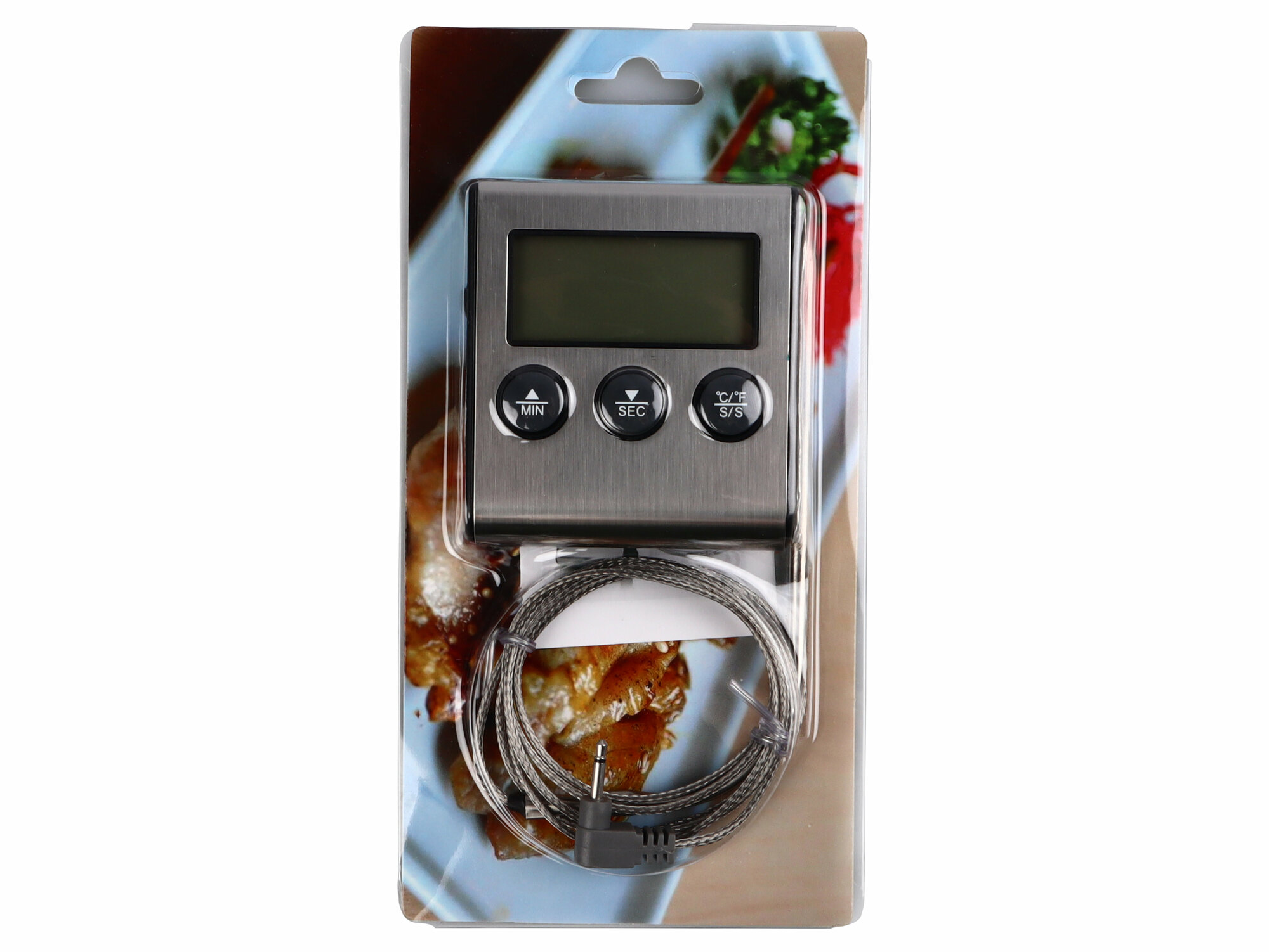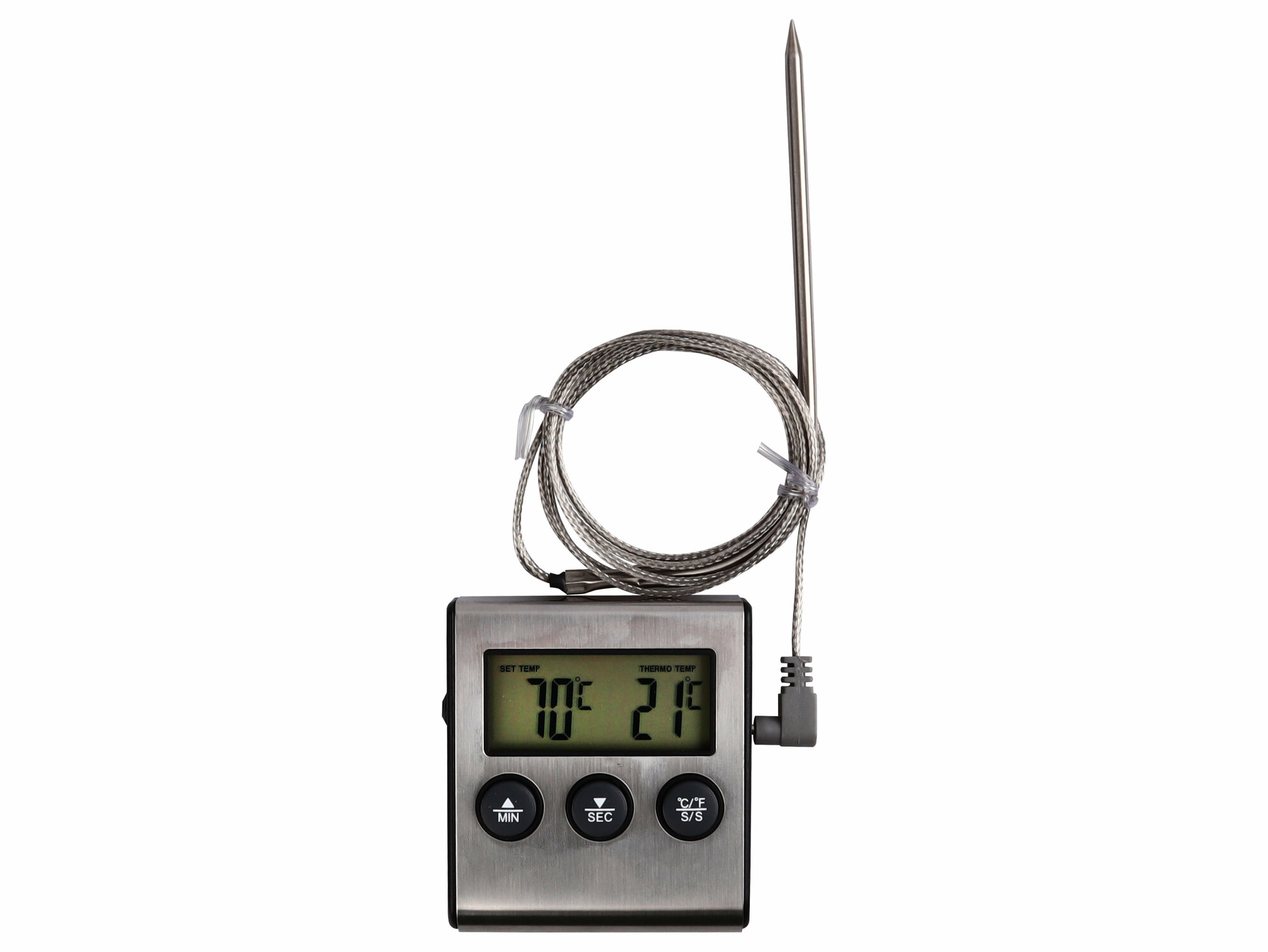 Кулинарный термометр электронный со щупом из нержавеющей стали, термометр для еды, мяса, вина, провод 1 метр / таймер кухонный