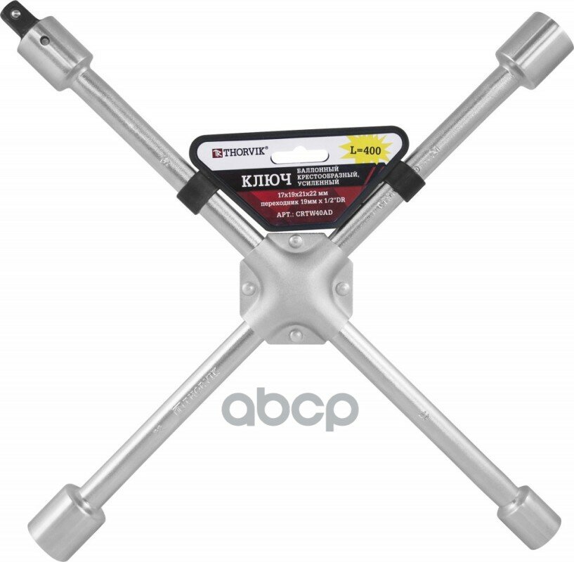 Купить Ключ Баллонный Крестообразный, Усиленный, 17х19х21х22, С Переходником 1/2dr, 400 Мм" THORVIK арт. CRTW40AD