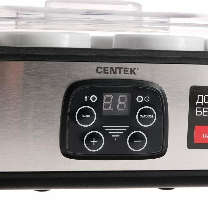 Centek Йогуртница Centek CT-1443, 30 Вт, 0.2 л, 8 ёмкостей, стекло, таймер, дисплей, серо-чёрная интересное: