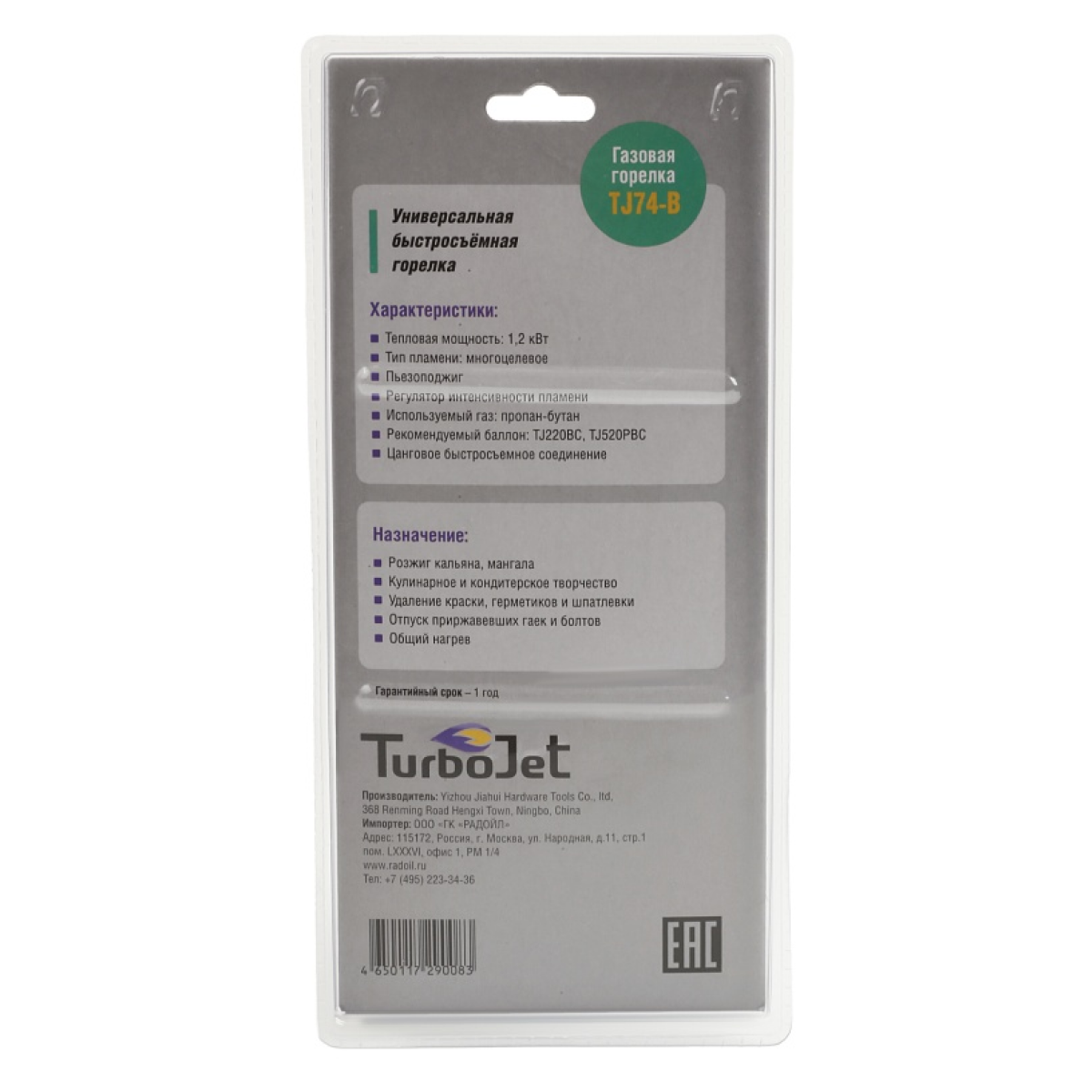 Газовая горелка под сменный газовый баллон, без баллона TurboJet TJ74-B
