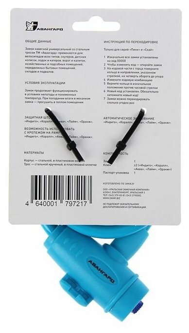 Купить Велосипедный противоугонный замок авангард ВС-Т10 (1000 мм) техно аква тросовый