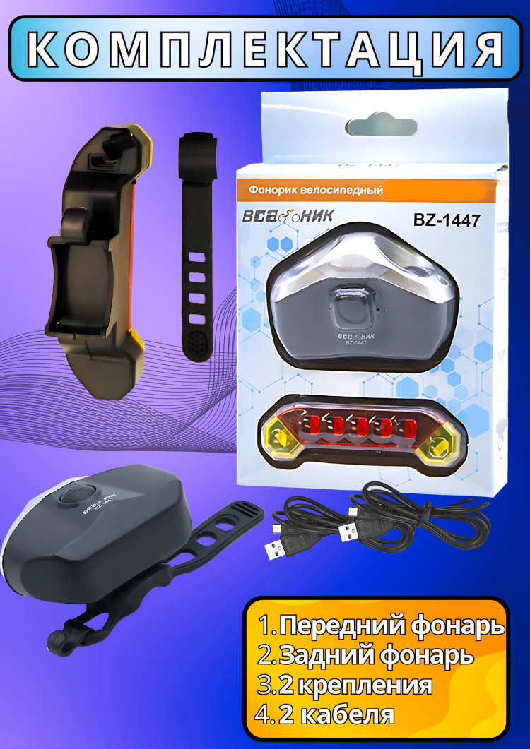 Велосипедный фонарь BZ-1447 передний + задний интересное: