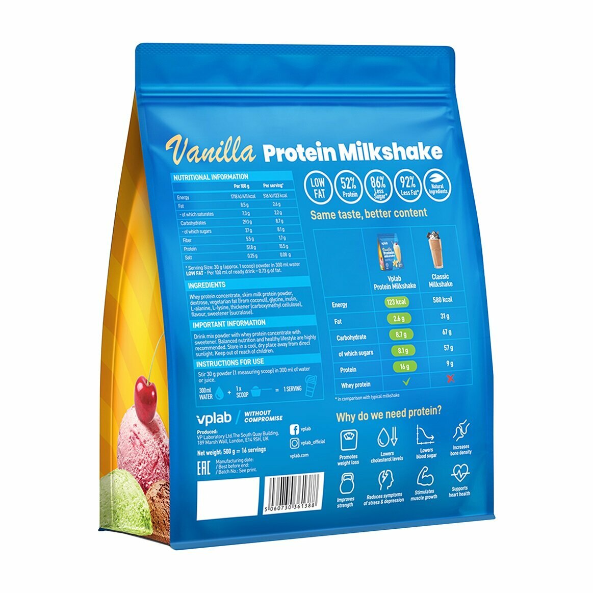 Vplab, Protein MilkShake - 500g (Ваниль)