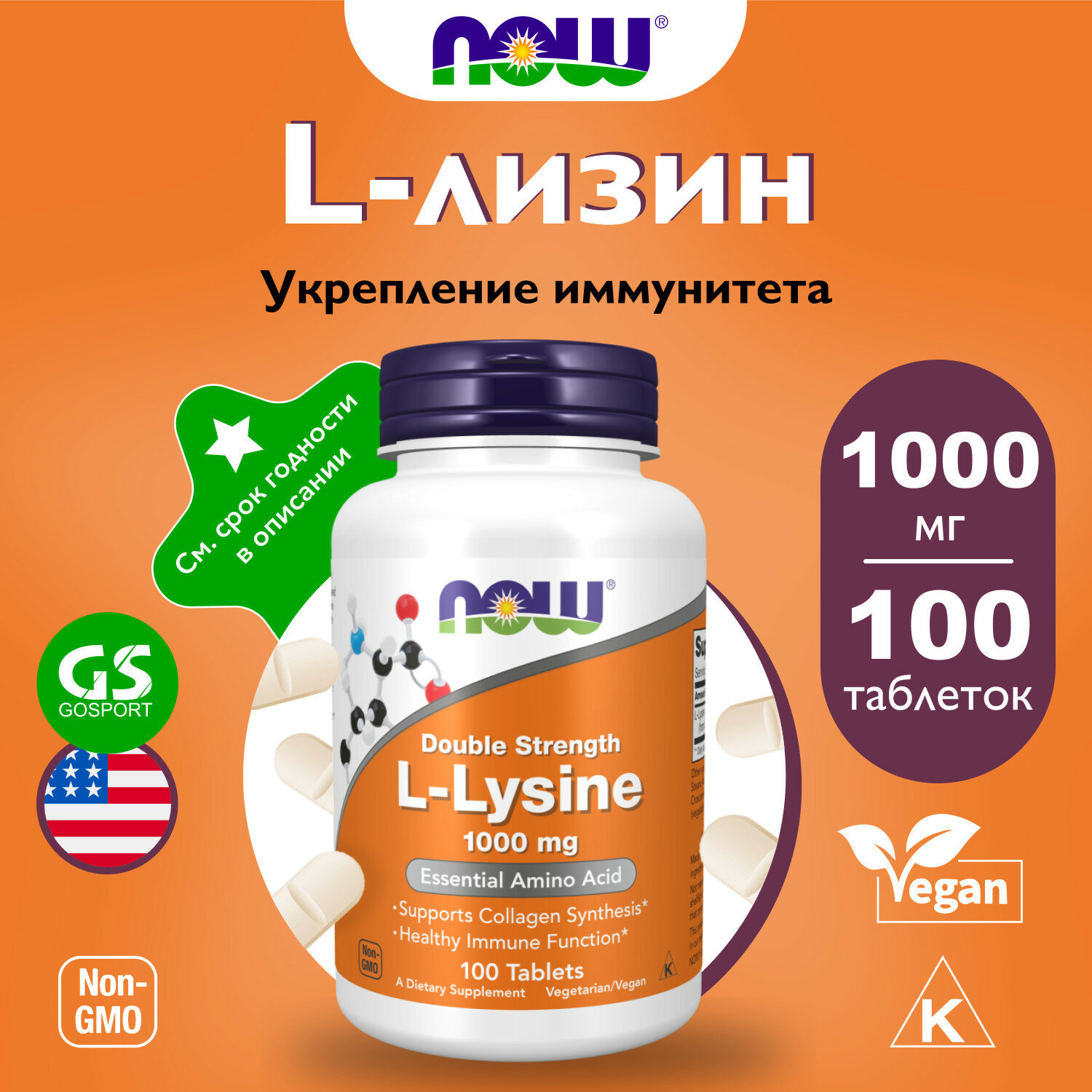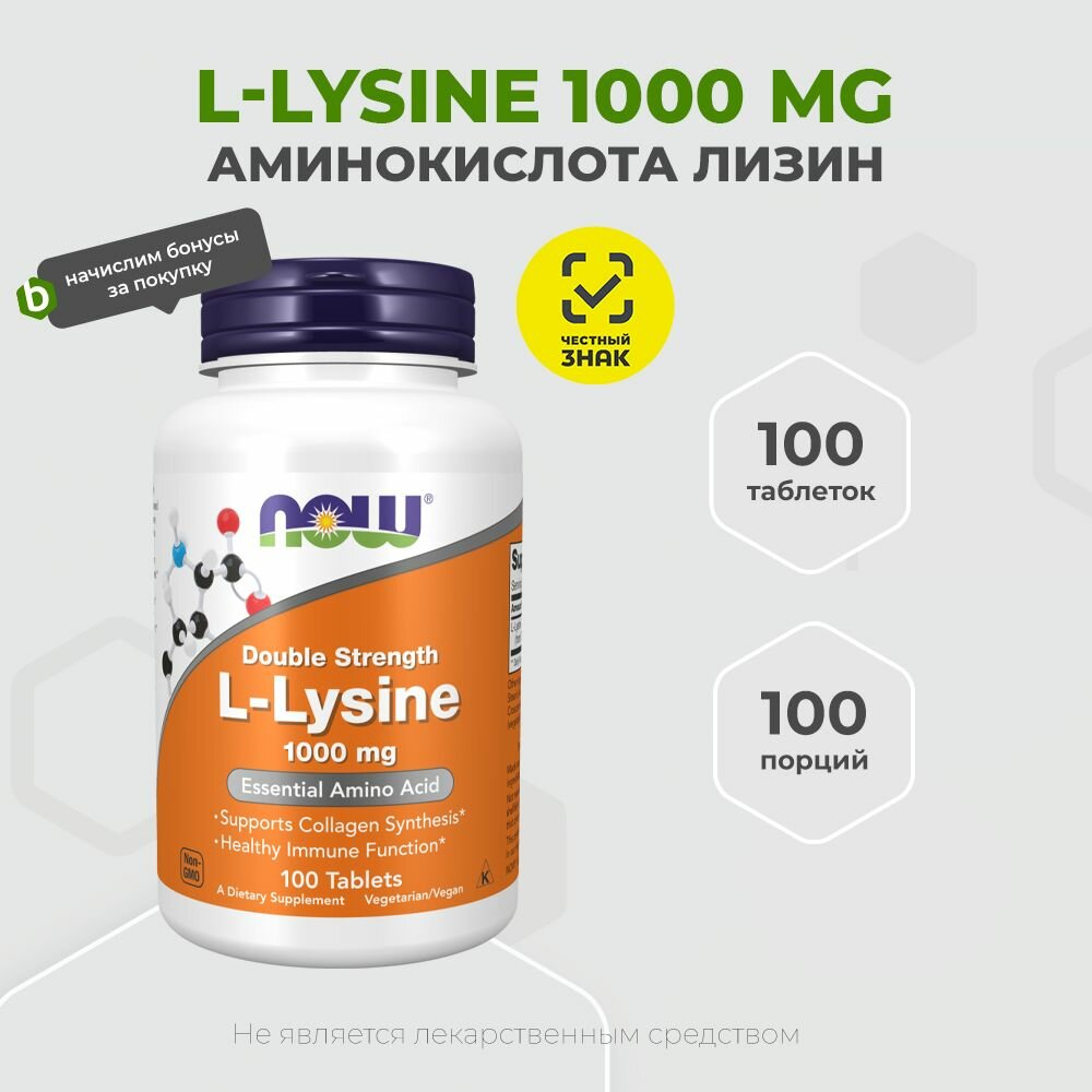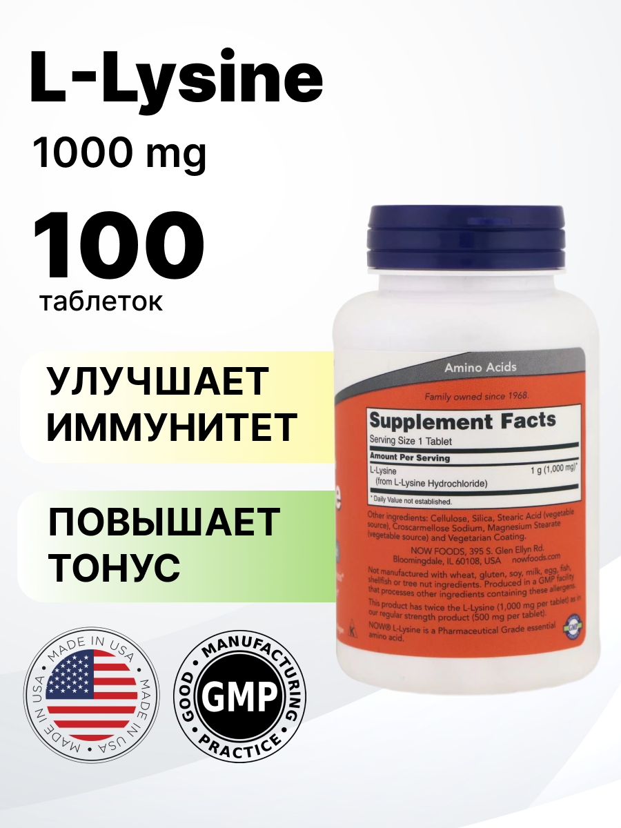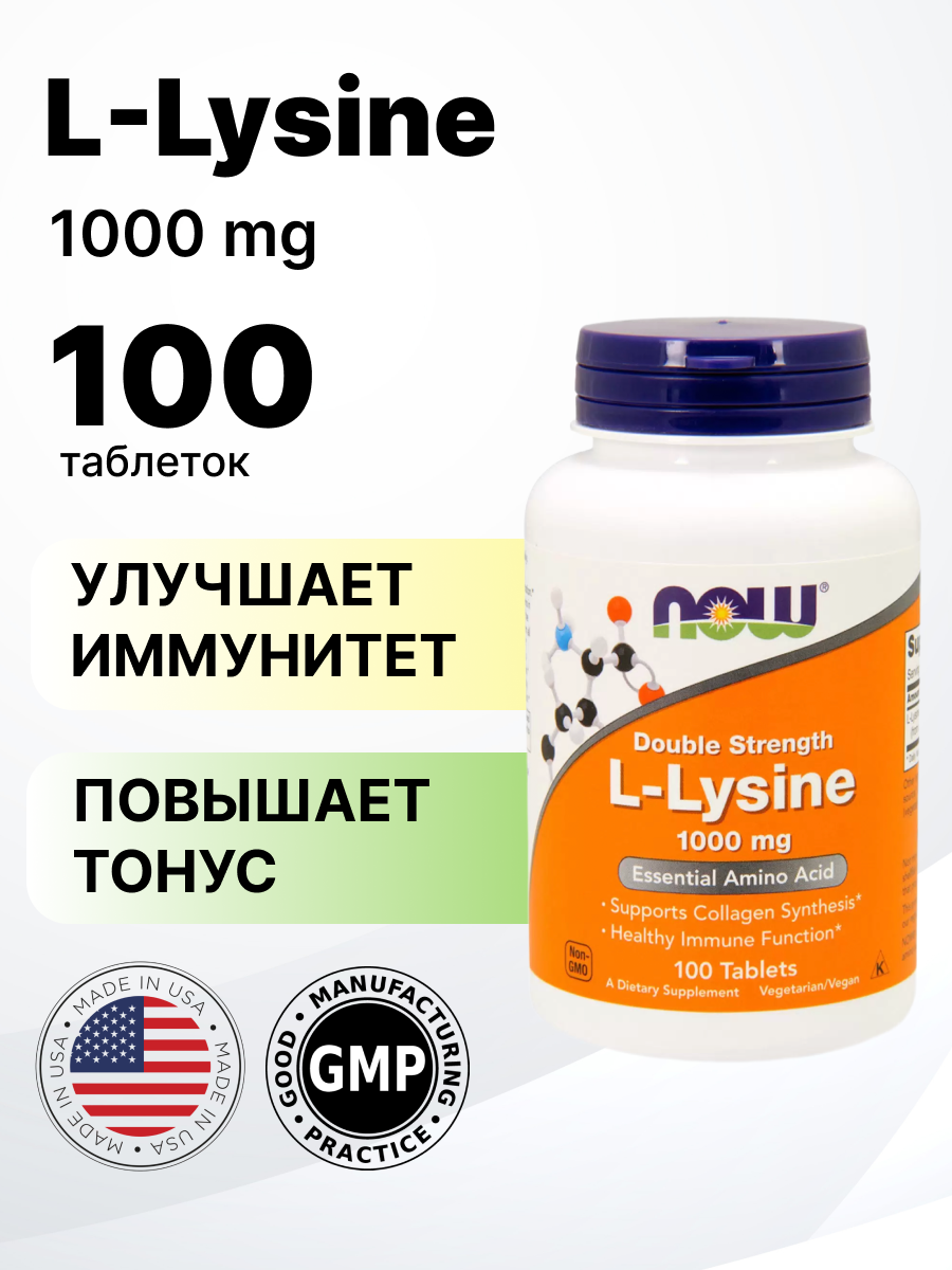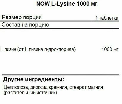 NOW L-Lysine 1000 mg, 100 таб. интересное: