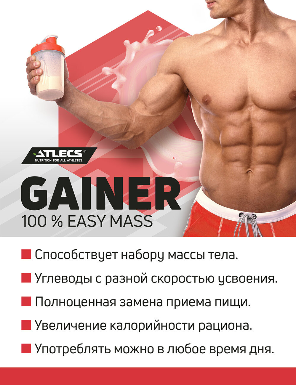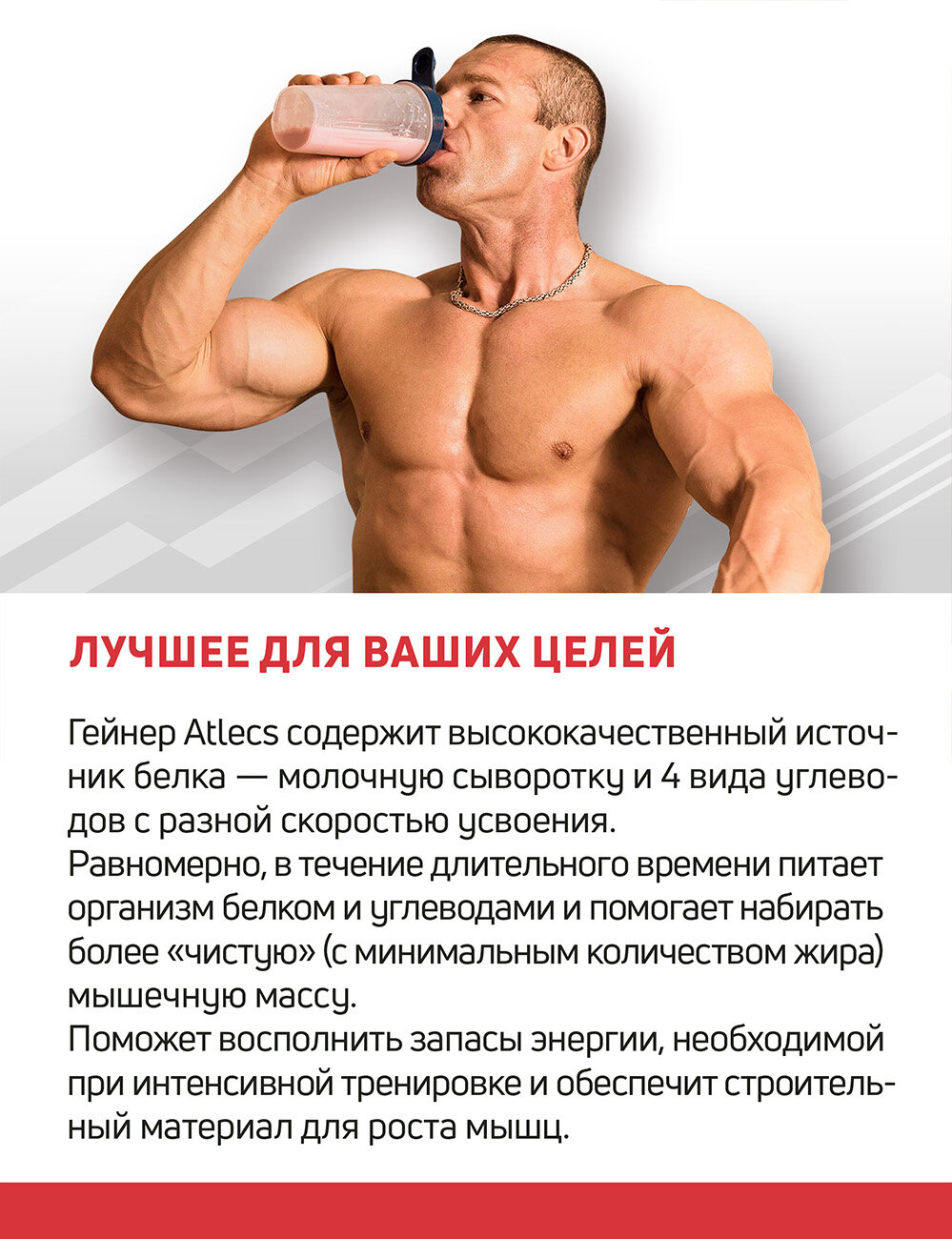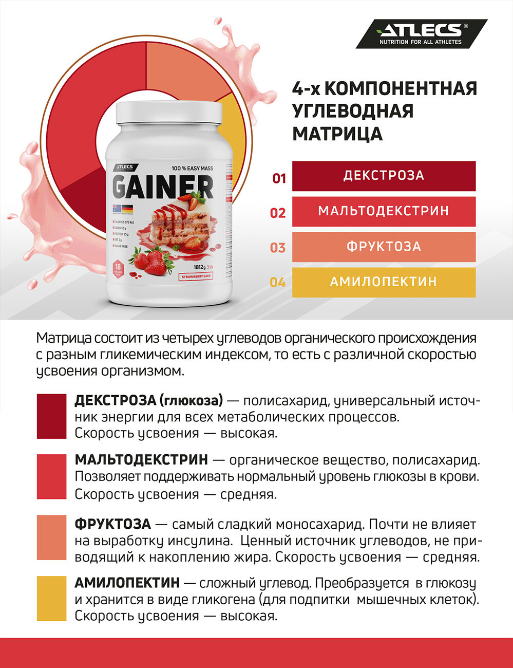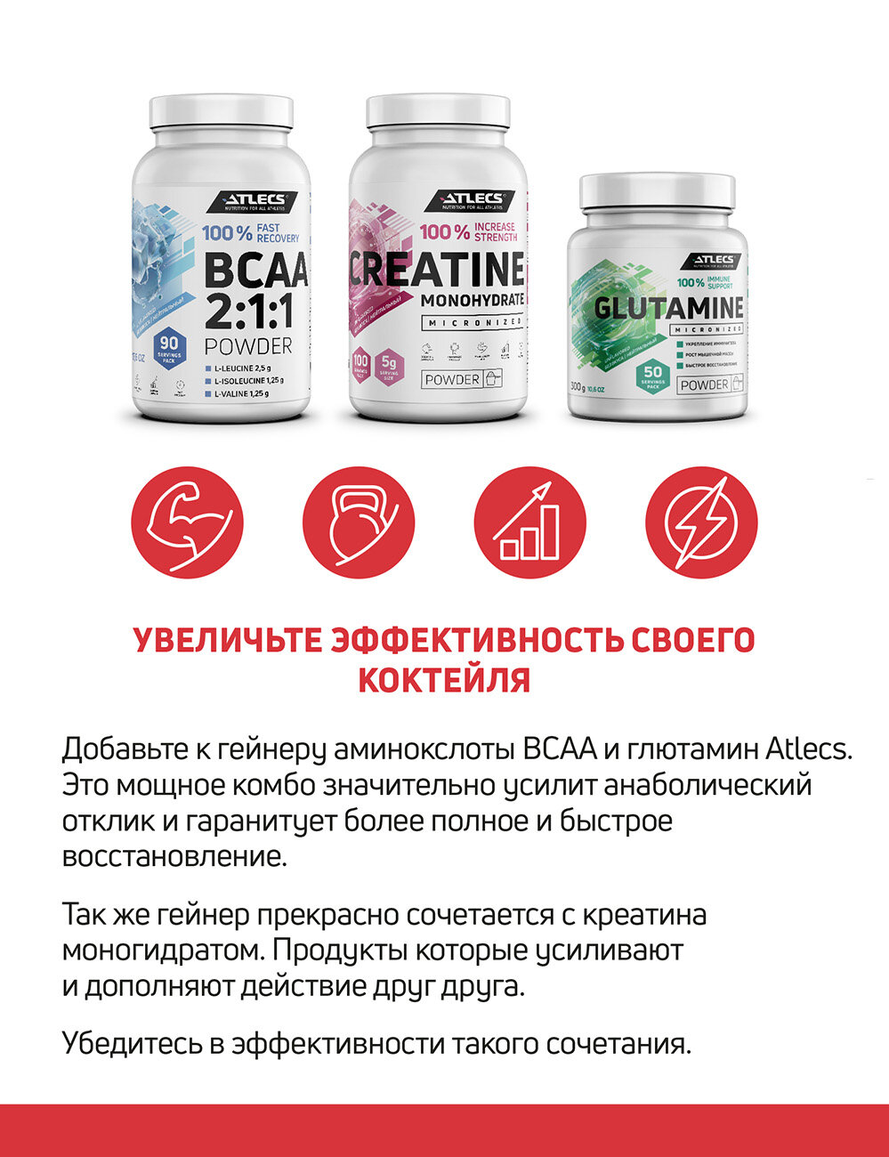 Atlecs Gainer 1812 g, (клубничный торт) интересное: