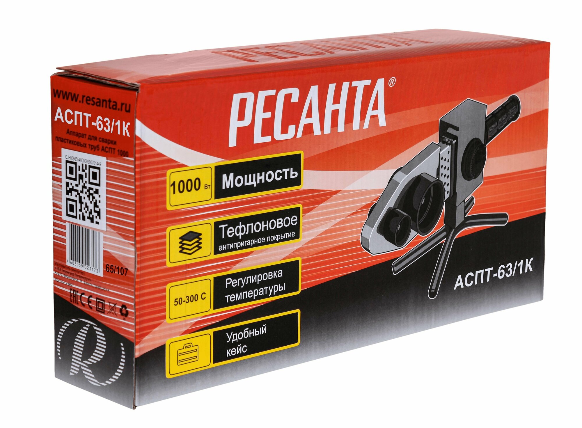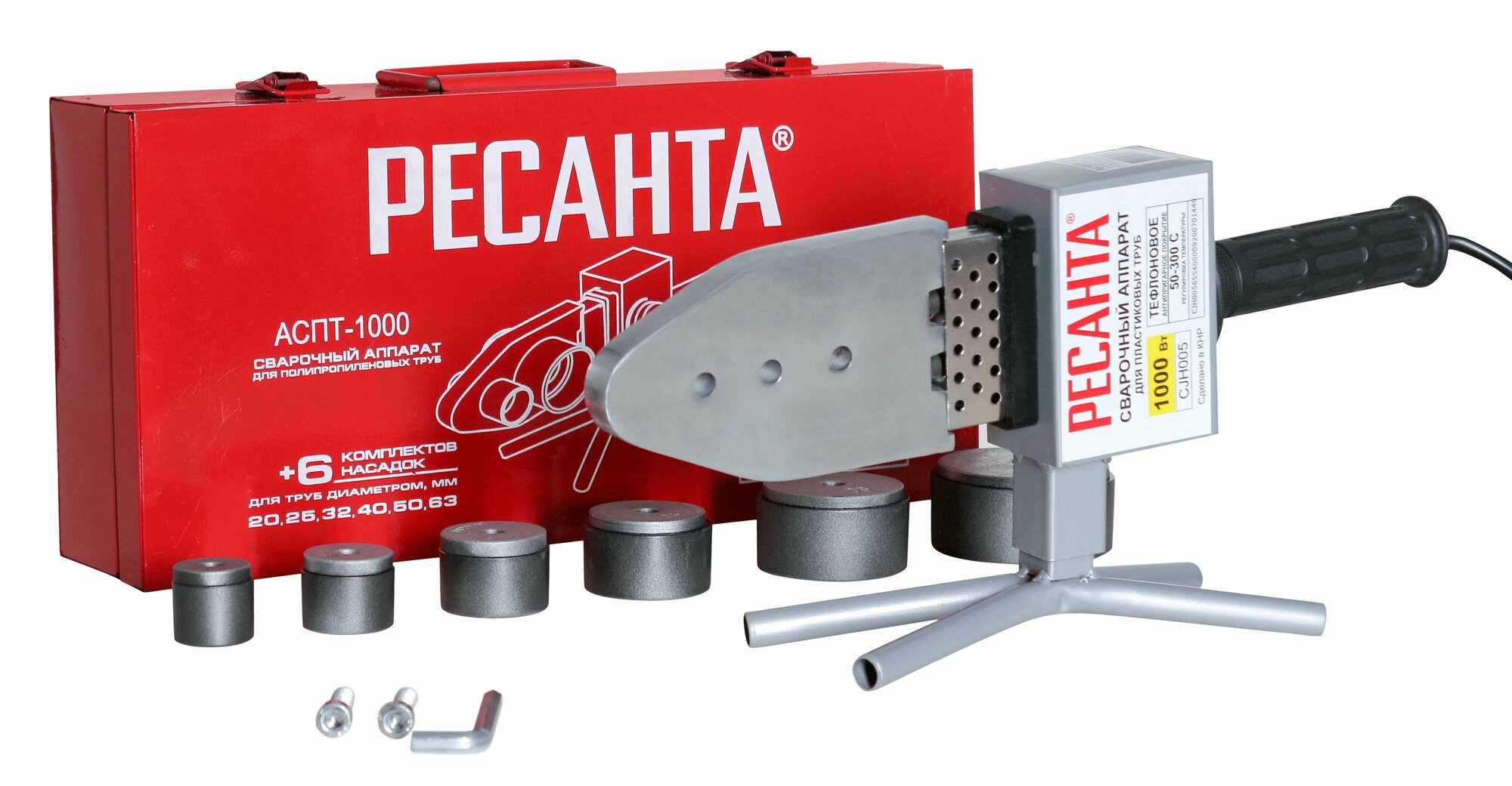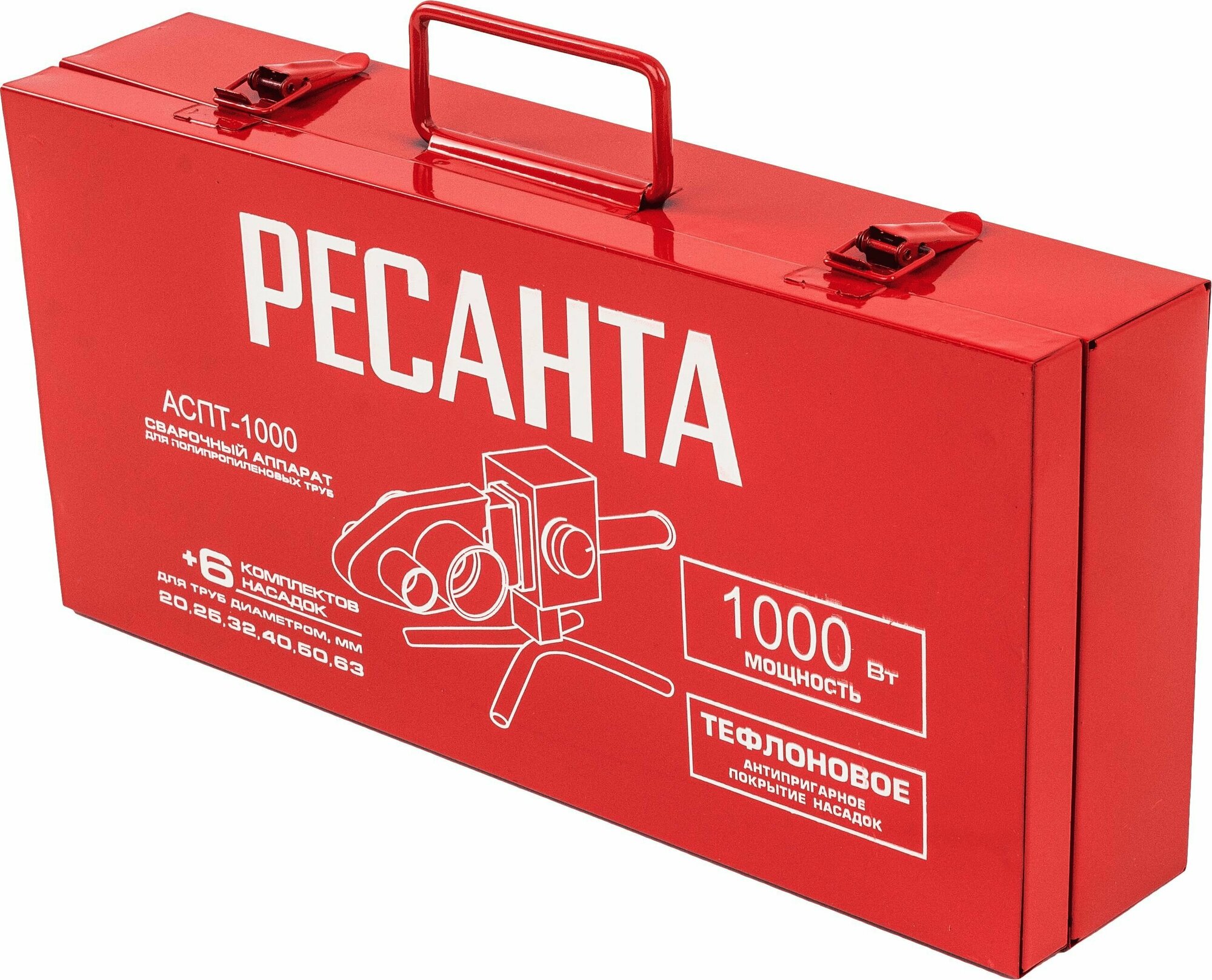 Аппарат для сварки ПВХ труб Ресанта АСПТ-63/1К, 65/107, муфтовая сварка, 1000 Вт, 220 В, металл
