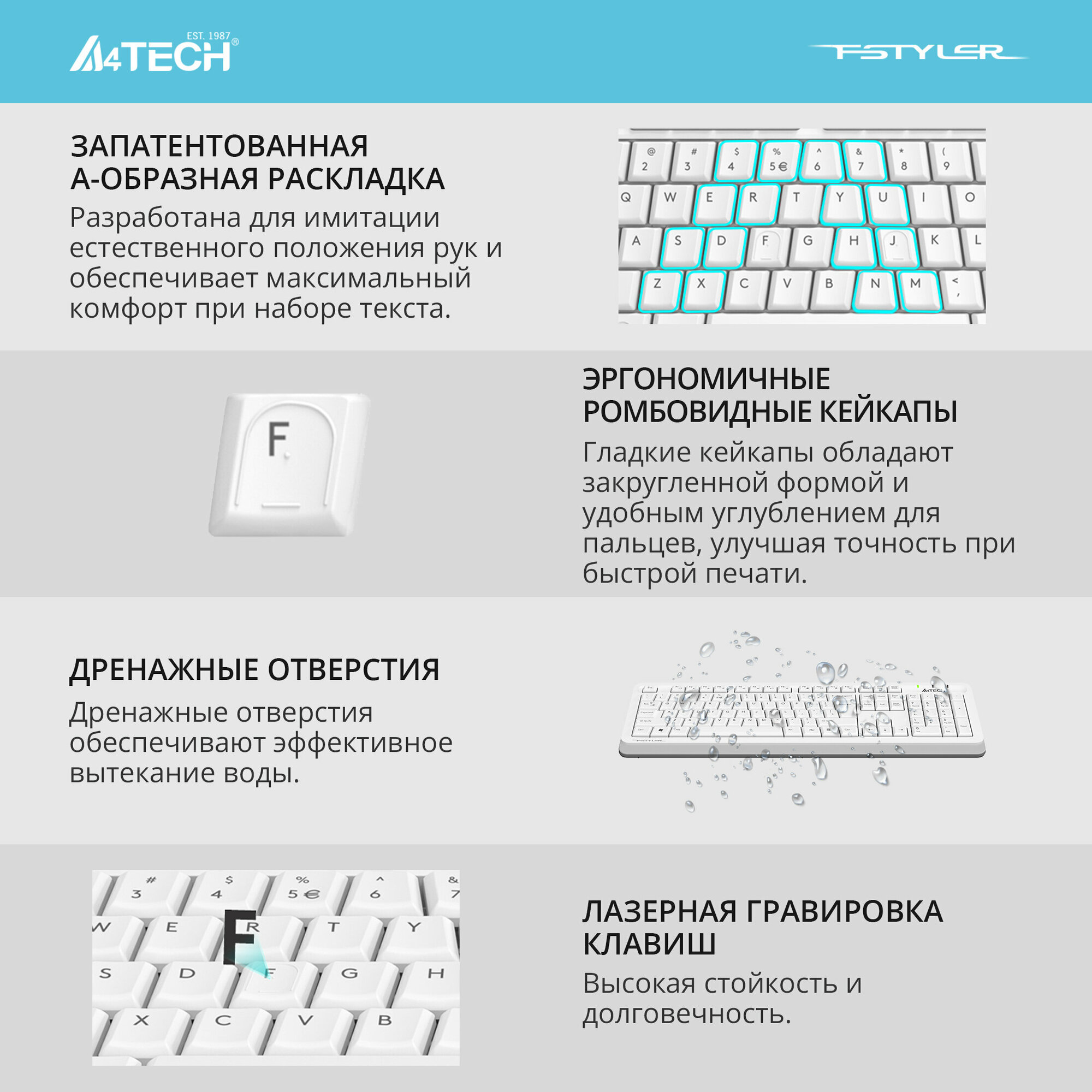 Клавиатура A4Tech Fstyler FKS10 Blue 104КЛ .