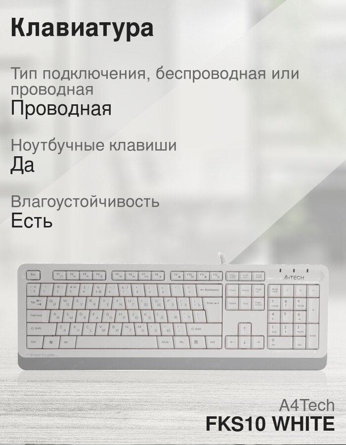 Клавиатура A4Tech Fstyler FKS10, мембранная, проводная, USB, белый/серый (FKS10 WHITE)