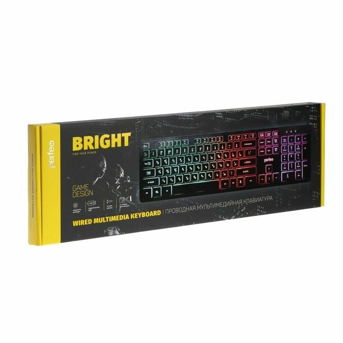 Клавиатура Perfeo Bright, Game Design, низкие кн.,подсветка, Usb, чёрный